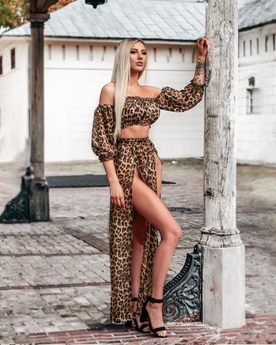 Женский комплект из двух предметов, топ с открытыми плечами, длинны...