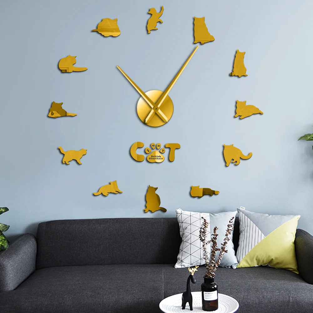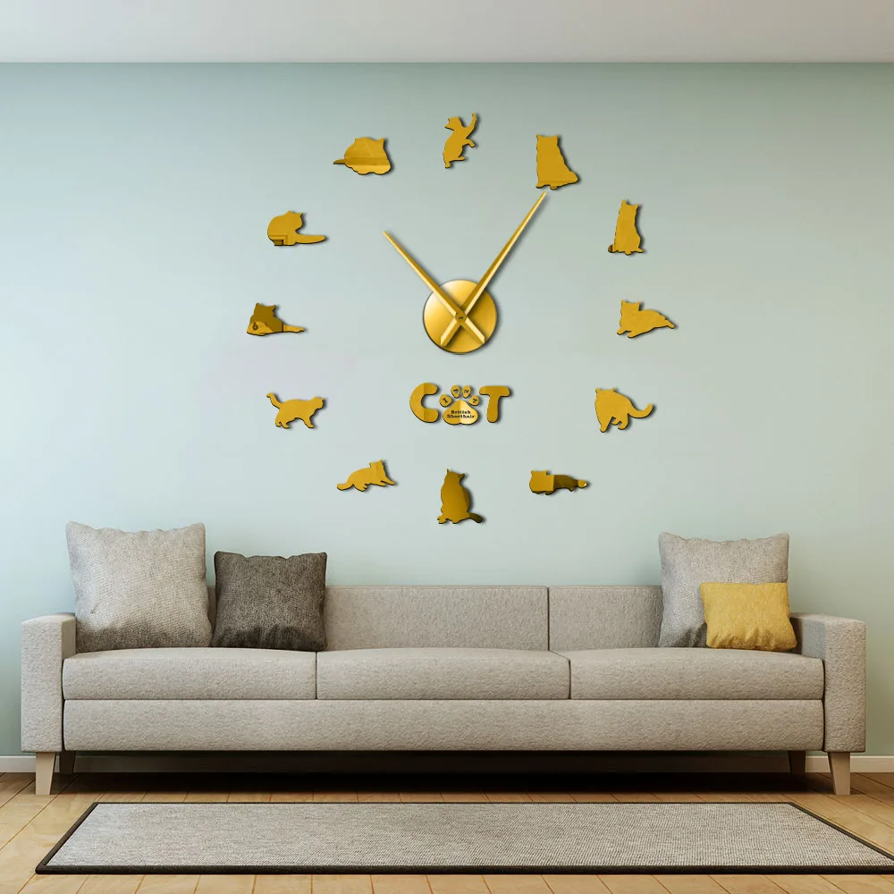 Декоративные настенные часы в британском стиле, 3d-часы в виде котят и котят с изображением кошек и пород, Самоклеящиеся украшения для дома