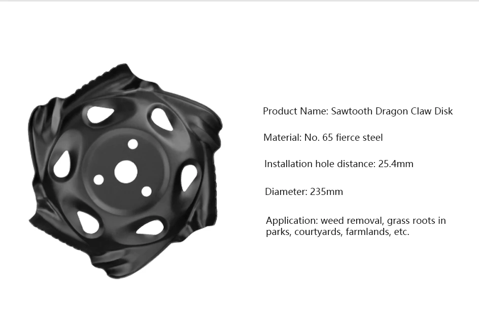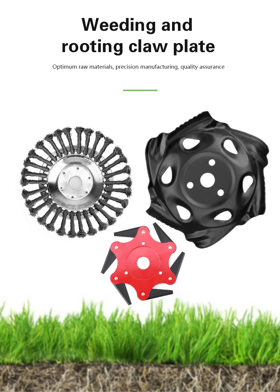 Острый и эффективный Щетка для сорняков имеет внутреннюю фиксированную структуру пластины для обеспечения стабильности и безопасности. Более острый и эффективный, чем другие типы. Длительный срок службы и долговечность Щетка для сорняков изготовлена из углеродистой стальной проволоки, которая может нормально работать при ударе по камню и жесткому блоку. Срок службы будет в 10 раз дольше, чем у других триммеров. Подходит и применяется Щетка для сорняков подходит для большинства моделей триммеров и подходит для садовых инструментов с прямым валом.