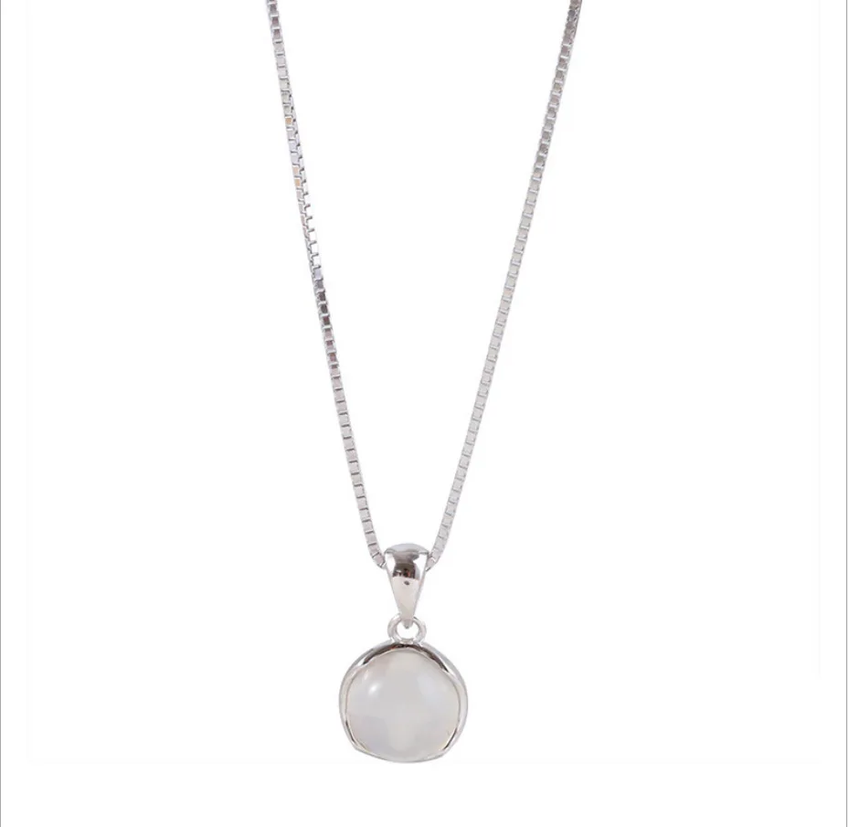 Посеребренная белая круглая подвеска с лунным камнем женское ожерел...