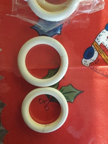 Отправили очень быстро.Сами кольца гладкие ,все отлично.Но при доставке повредился пакет и запачкались 2 кольца...в итоге вместо 3 у меня 2 целых кольца..
