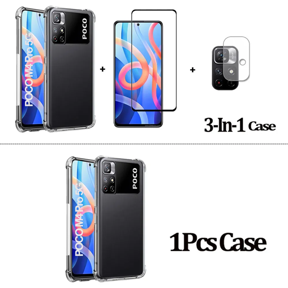 poco M4 Pro 5G чехол+стекло, силикон прозрачный чехлы Xiaomi Poco F...