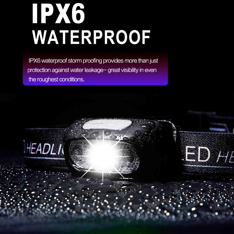 Super Bright Waterproof Headlampbuilt-in high quality Li-polymer battery.