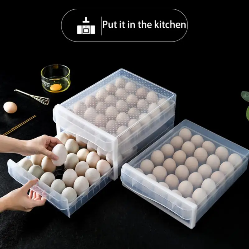 Вместительный контейнер для яиц, 60 ячеек, бытовой контейнер для хранения свежести яиц, холодильник, кухонный многослойный контейнер для хранения куриных яиц