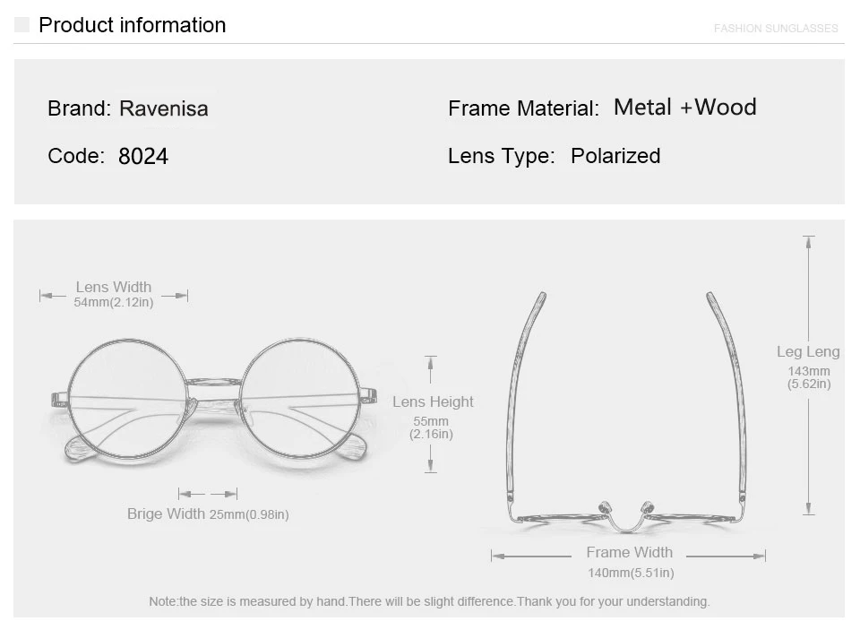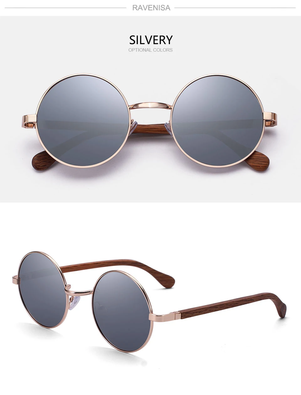 Очки солнцезащитные RAVENISA, круглые деревянные очки в стиле ретро для мужчин и женщин, поляризационные синие зеркальные очки, модные очки для вождения, 2021
