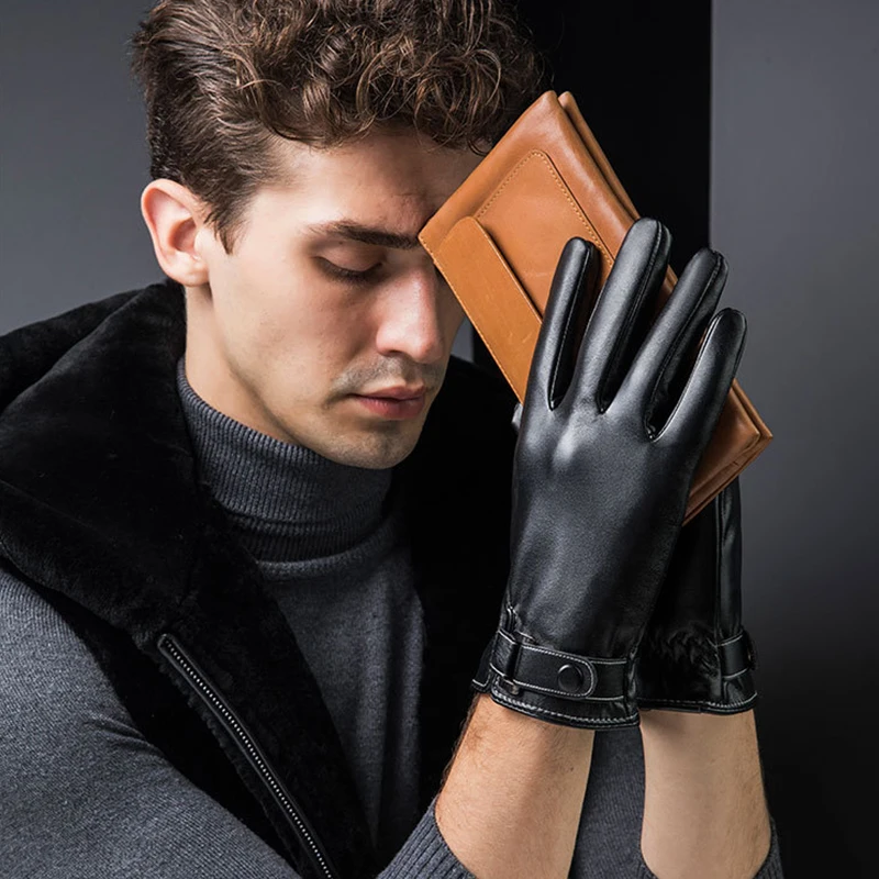 Мужские кожаные перчатки, зимние ветрозащитные перчатки для сенсорн...