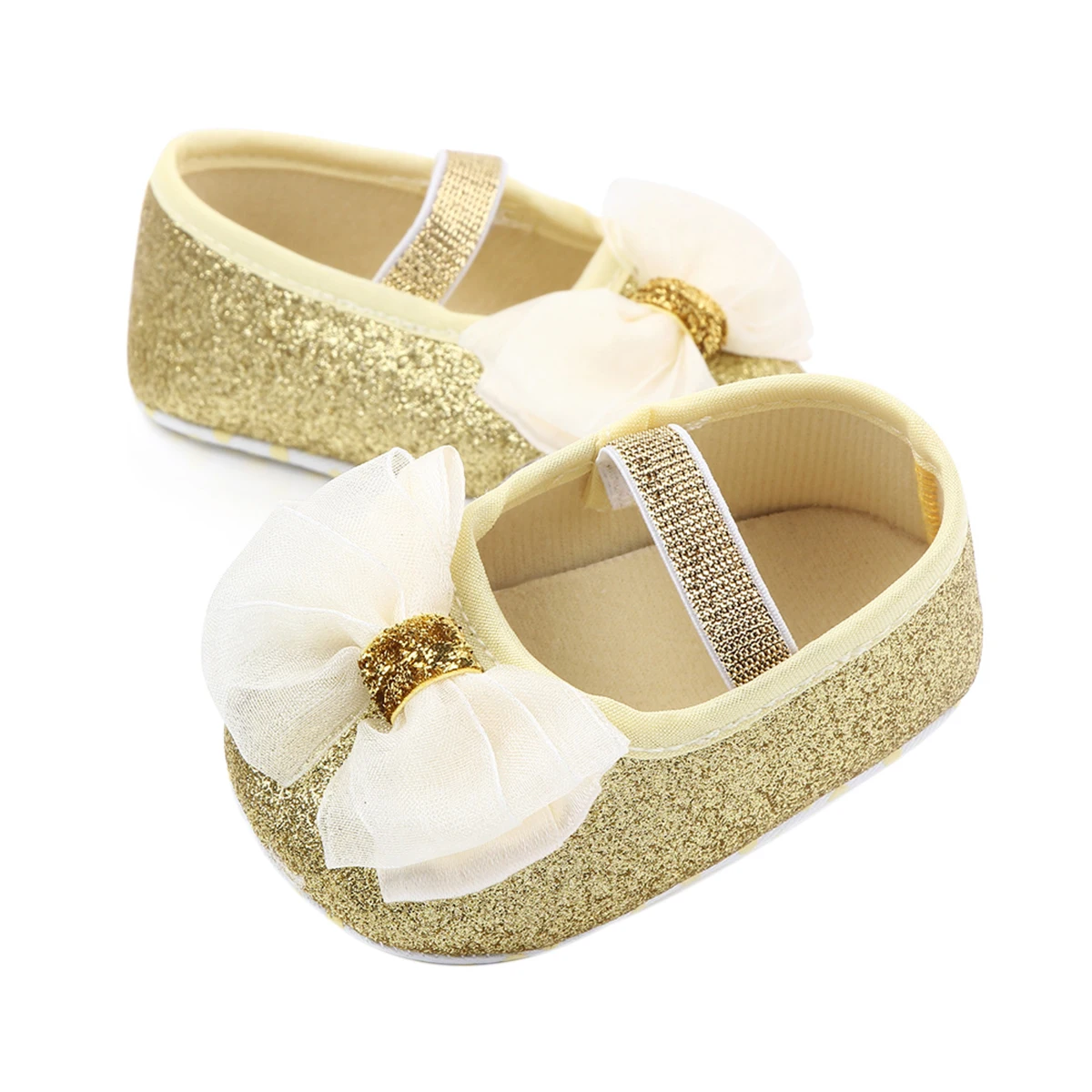 Туфли для маленьких девочек с милым бантом, повседневная обувь для малышей, обувь для первых шагов с мягкой подошвой для малышей, 0-11 месяцев
