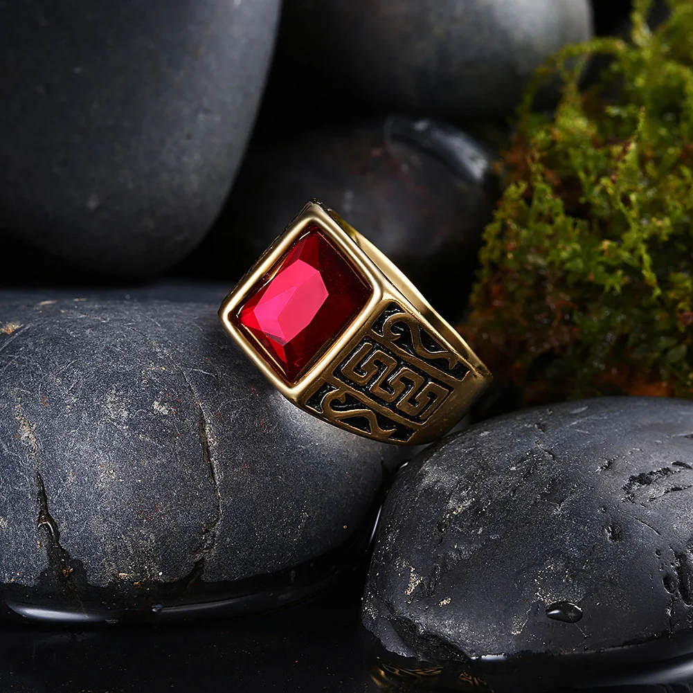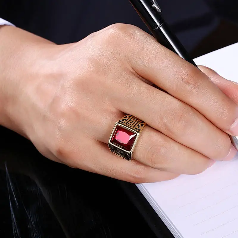 Гламур Мужская мода кольцо Винтаж гравировка рубиновое кольцо в стиле хип-хоп Ювелирное кольцо в стиле панк