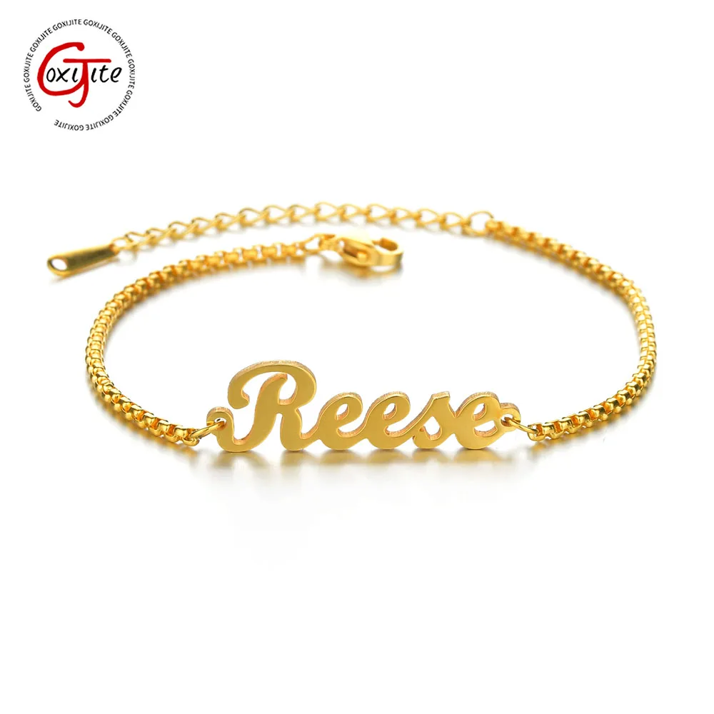 Имя:Браслет Goxijite с именем на заказ для женщин и маленьких девочек, индивидуальный браслет из нержавеющей стали с буквенным именем, браслеты, ювелирные изделия, подарок