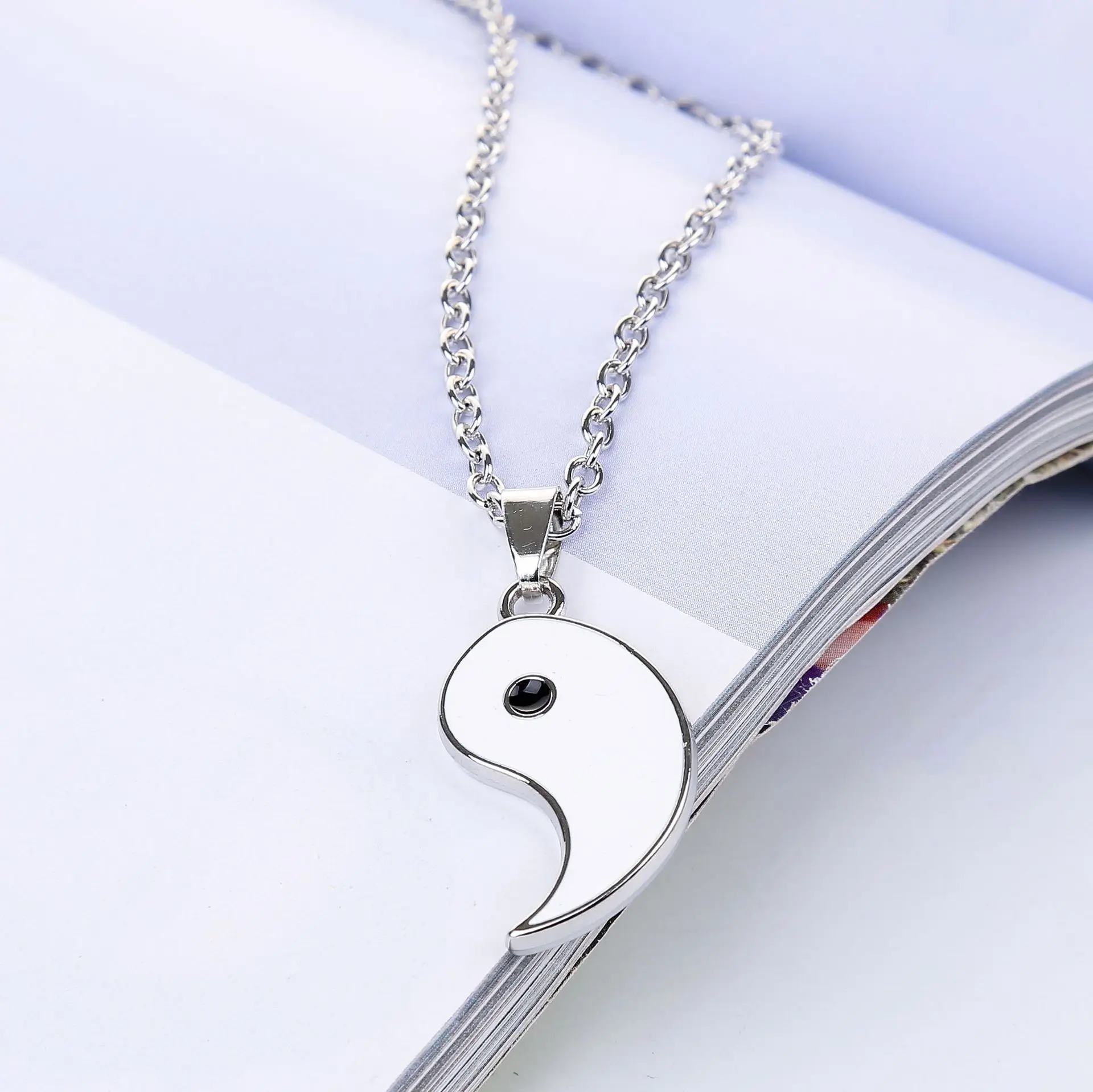 Двойное ожерелье для влюбленных женщин и мужчин, ошейники для лучших друзей, черные, белые, тайчи, yinyang, цепочка для шеи, ювелирное изделие