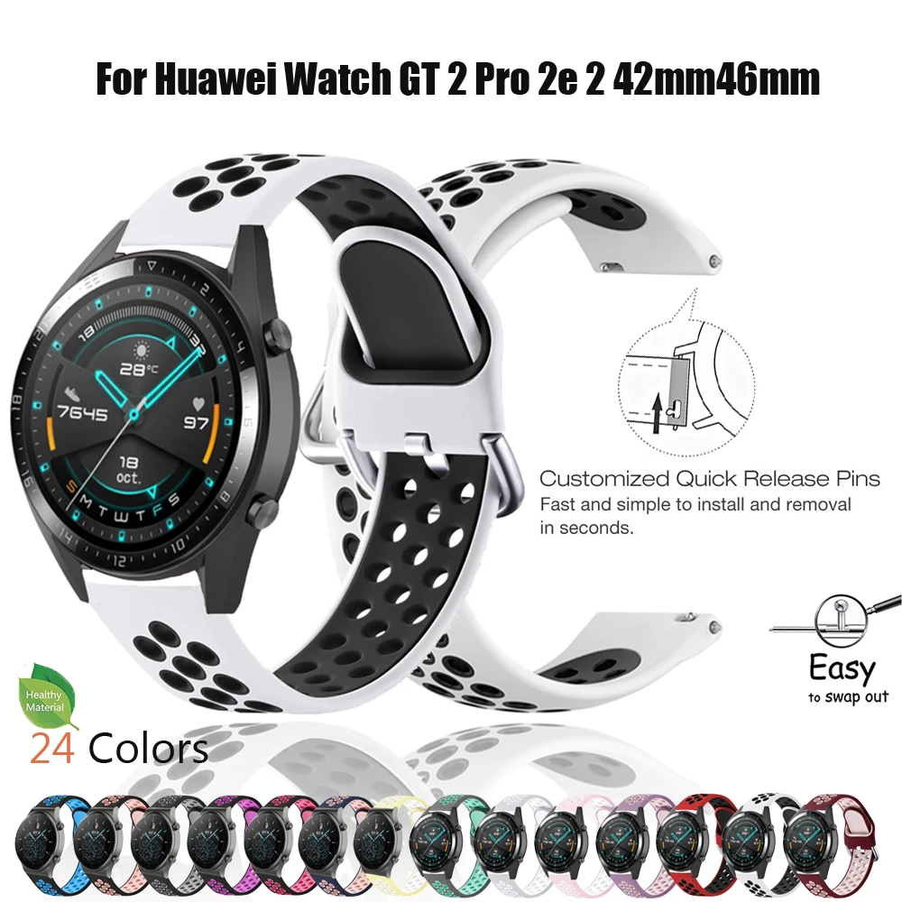 22 мм 20 мм ремешок для часов Huawei GT 2 42 мм 46 мм силиконовые браслеты браслет для часов huawei 2e/2 Pro Аксессуары