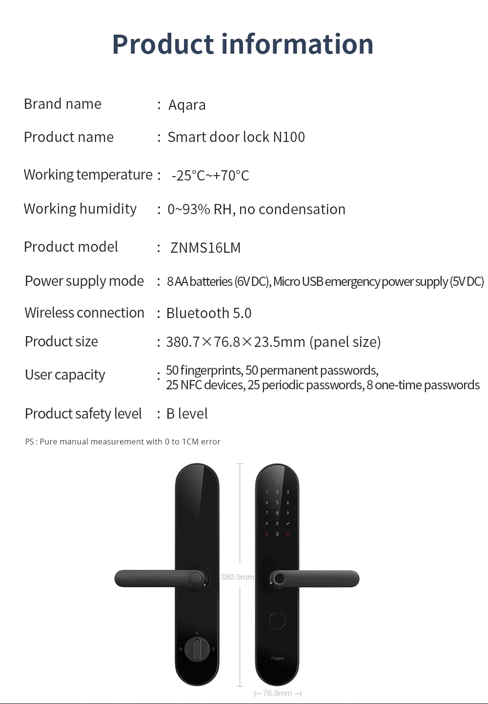 Умный дверной замок Aqara N100, пароль отпечатков пальцев, Bluetooth, разблокировка NFC для Apple HomeKit