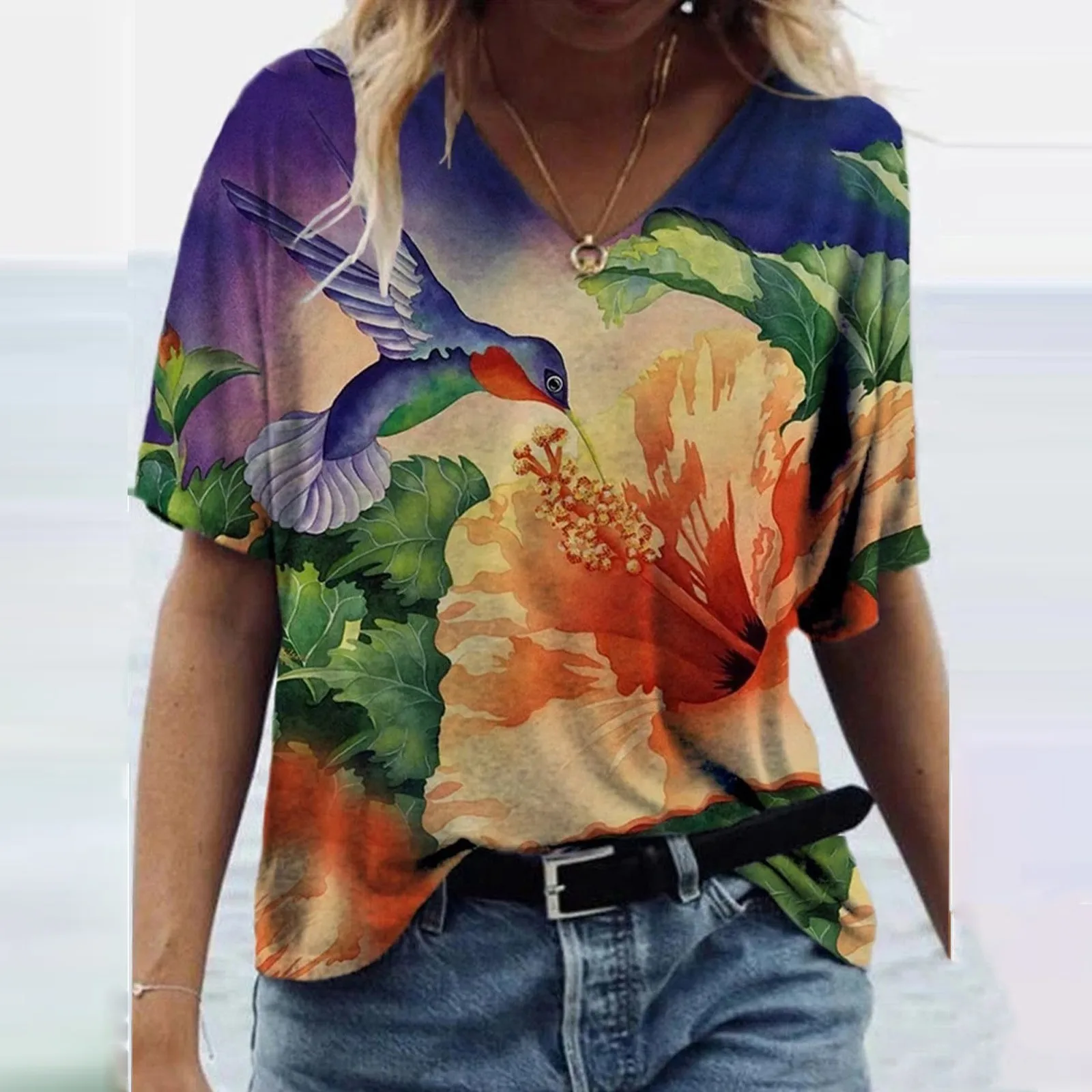 Женская футболка с цветочным 3D принтом, Свободный Повседневный Топ большого размера с V-образным вырезом и коротким рукавом, уличная одежда, 5XL