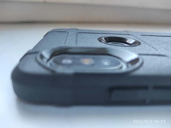 Отличный чехол! Сидит плотно, кнопки нажимаются нормально, защитное стекло не поднимает. В руке держать удобно, не скользит. Присутствует бортик вокруг экрана около 1 мм, камера же утоплена на 3 мм. Отверстие под сенсор достаточное, чтобы без проблем прикоснуться пальцем.