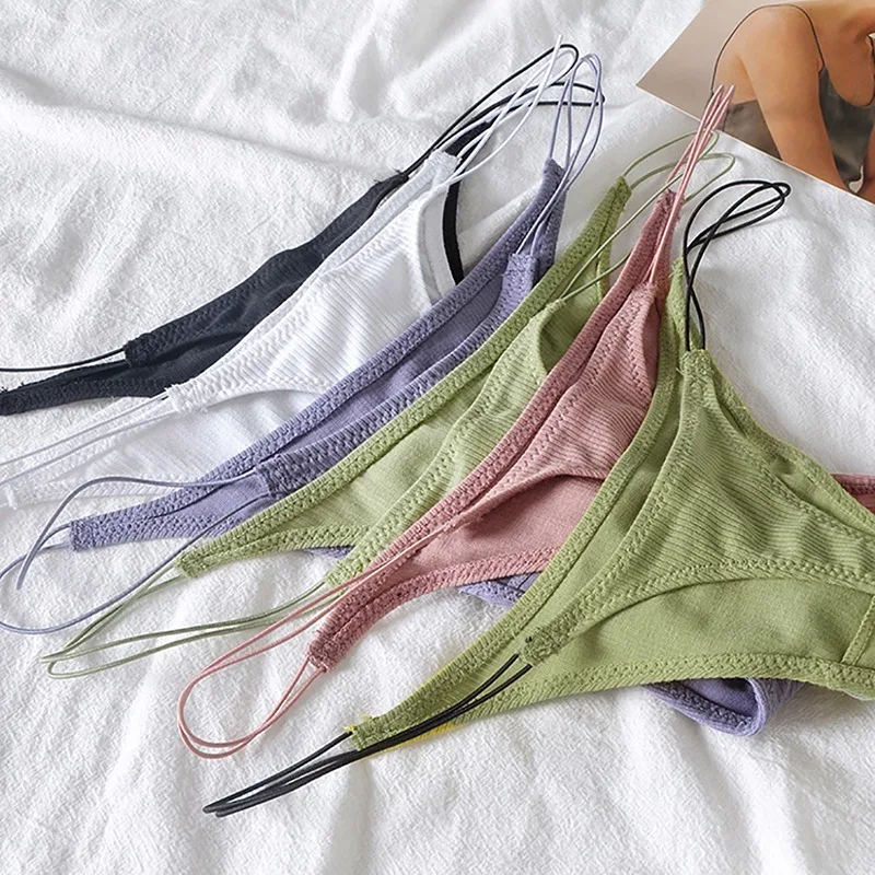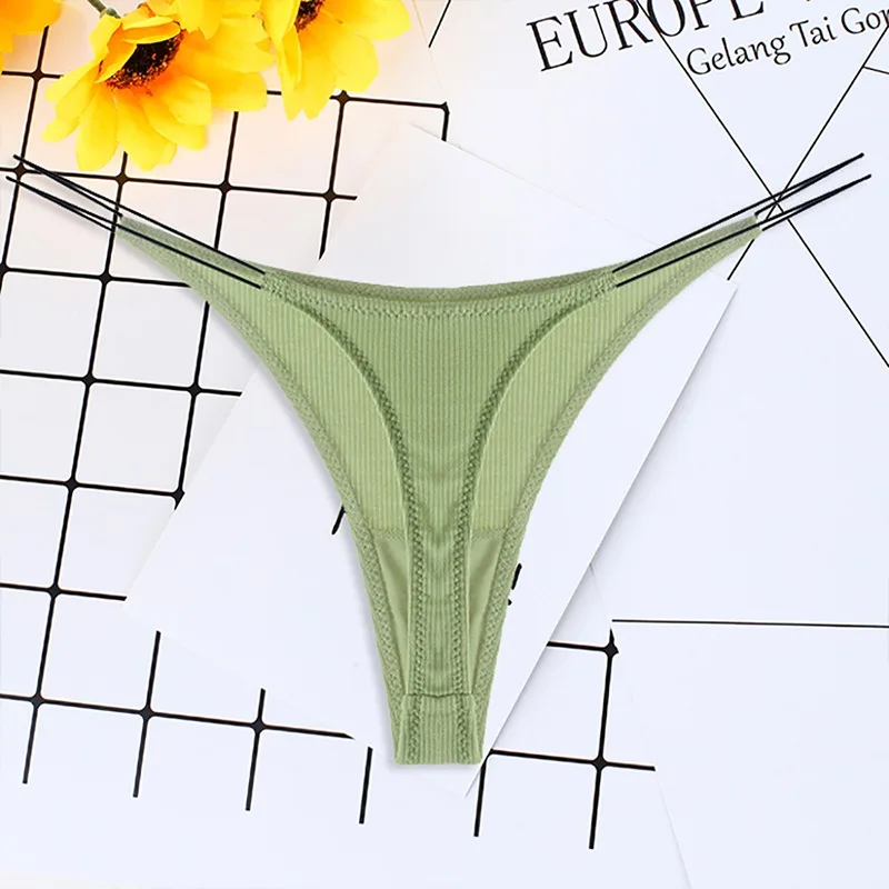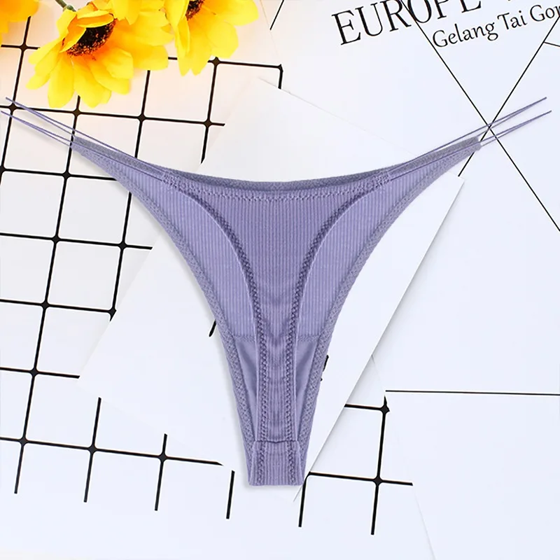Трусики-стринги женские хлопковые, Удобное повседневное однотонное бесшовное нижнее белье с T-образной спинкой и низкой талией