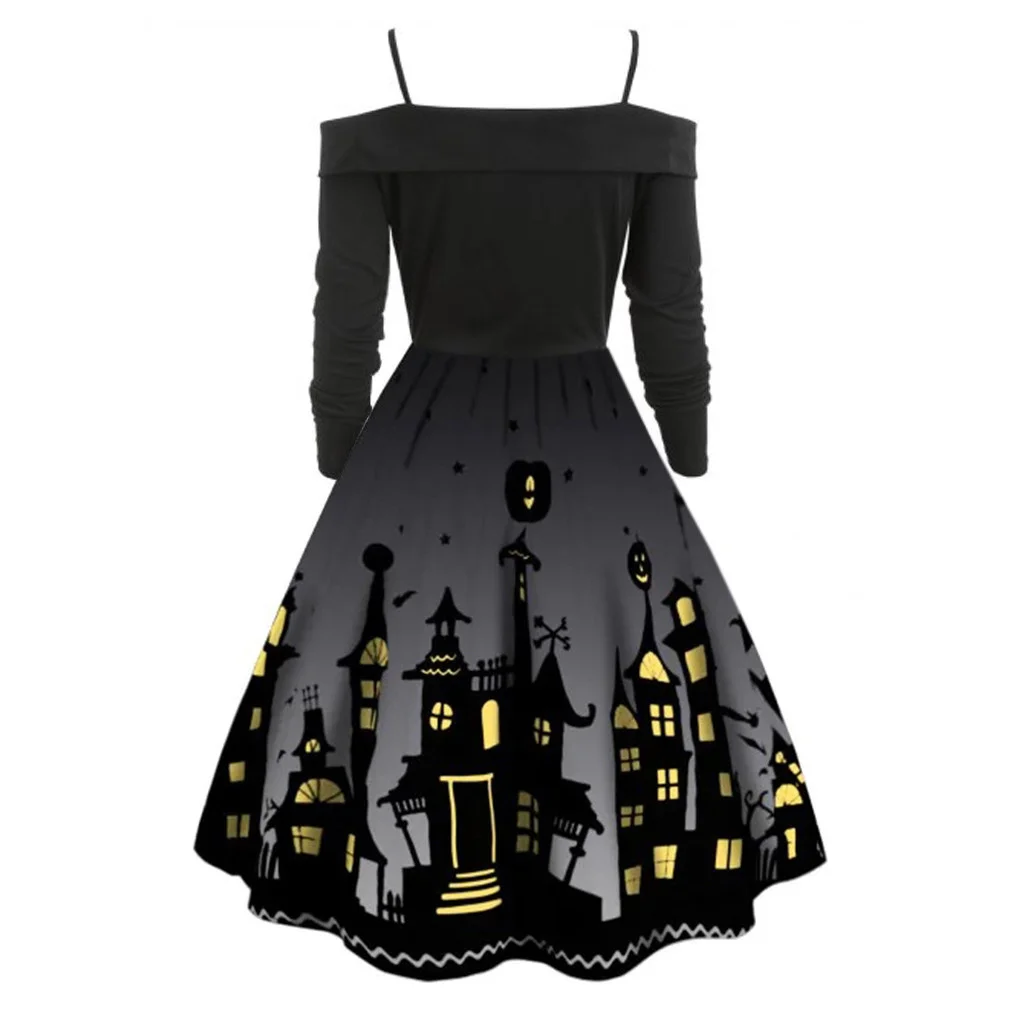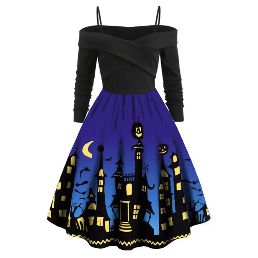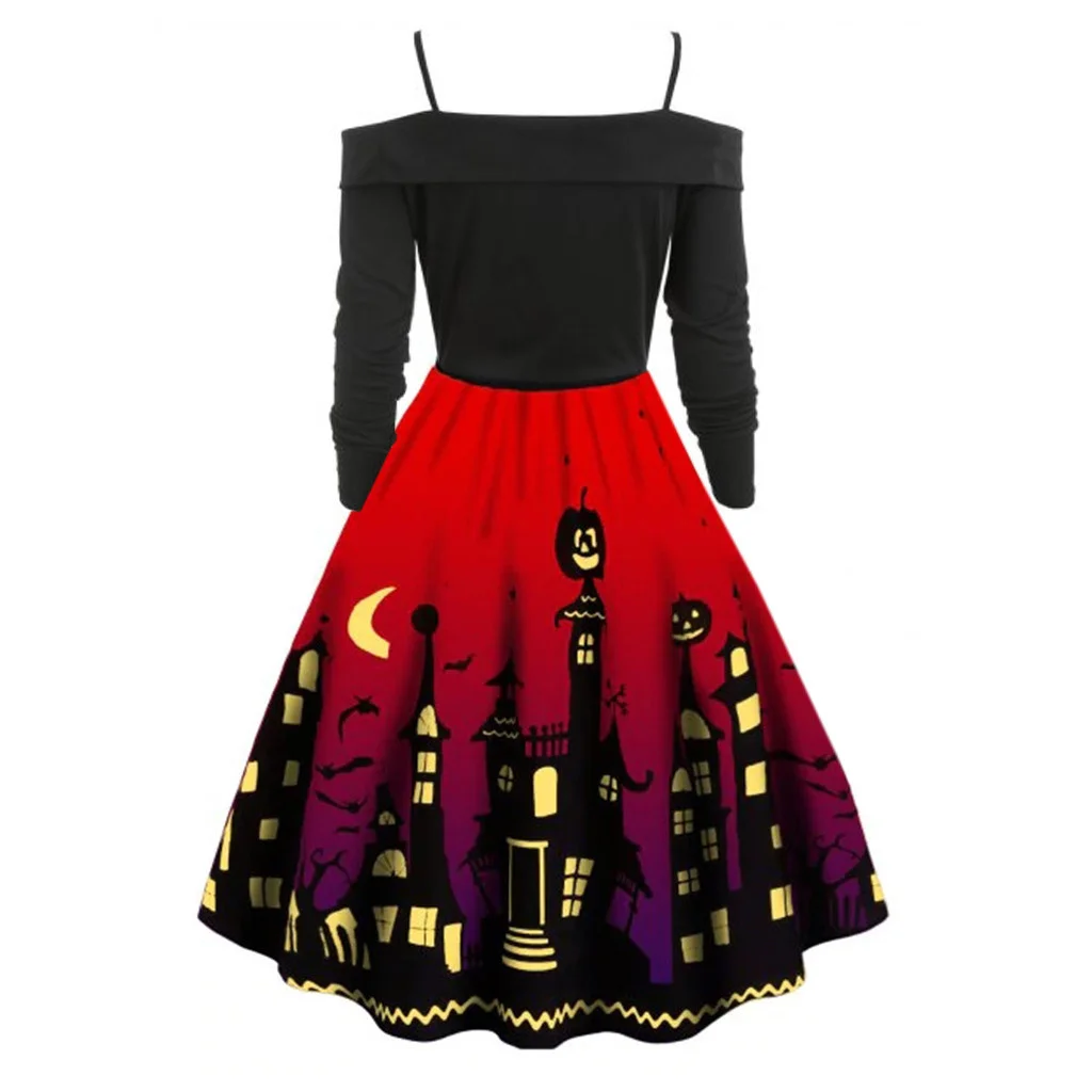Женское сундук с тыквой Вечерние Платье с принтом для девочек на Хэллоуин с длинным рукавом V образным вырезом Повседневная винтажная размера плюс платья vestido corto mujer FD