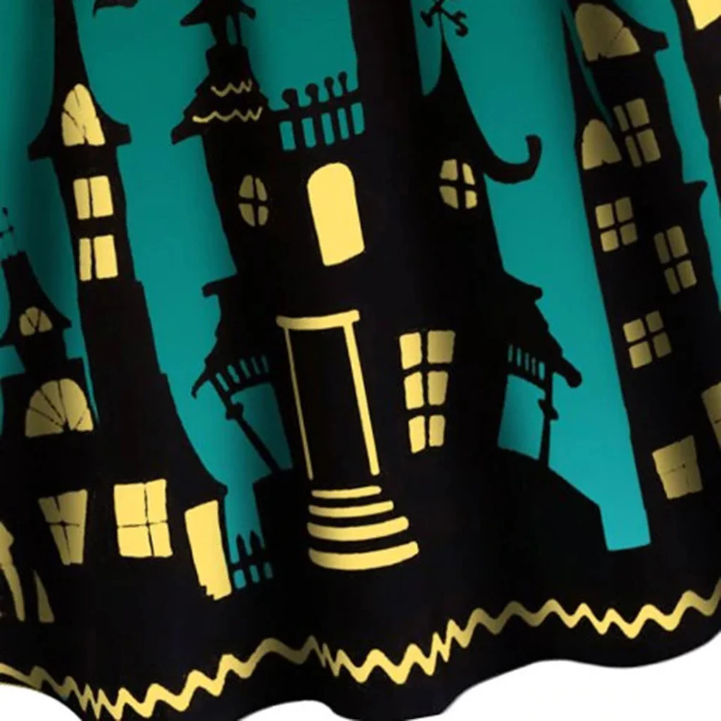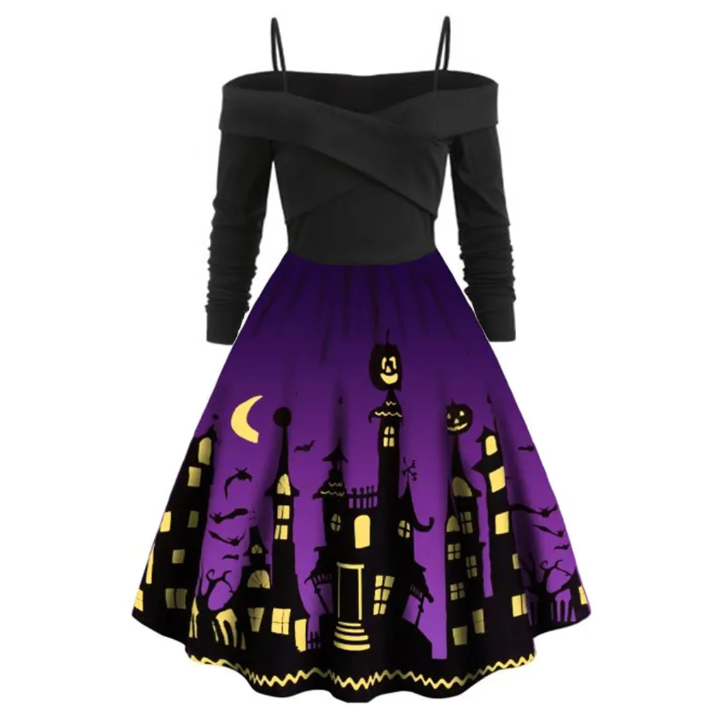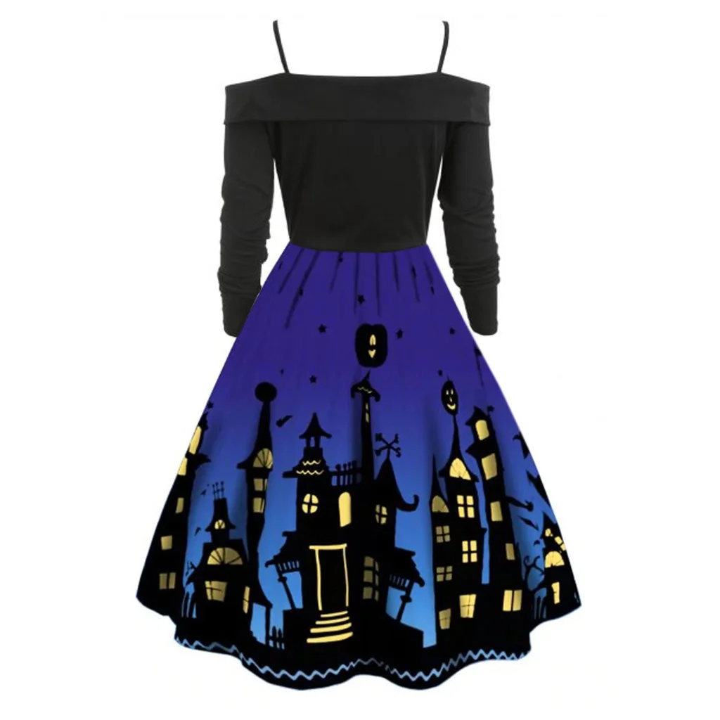 Женское сундук с тыквой Вечерние Платье с принтом для девочек на Хэллоуин с длинным рукавом V образным вырезом Повседневная винтажная размера плюс платья vestido corto mujer FD