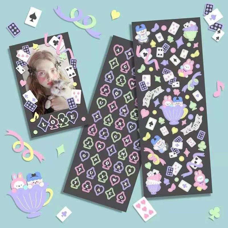 2 листа розовые милые панды лазер наклейки одежда с принтом милой коровы; С рисунком покер букв на телефоне альбом украшения наклейки-уголки дневник DIY Материал
