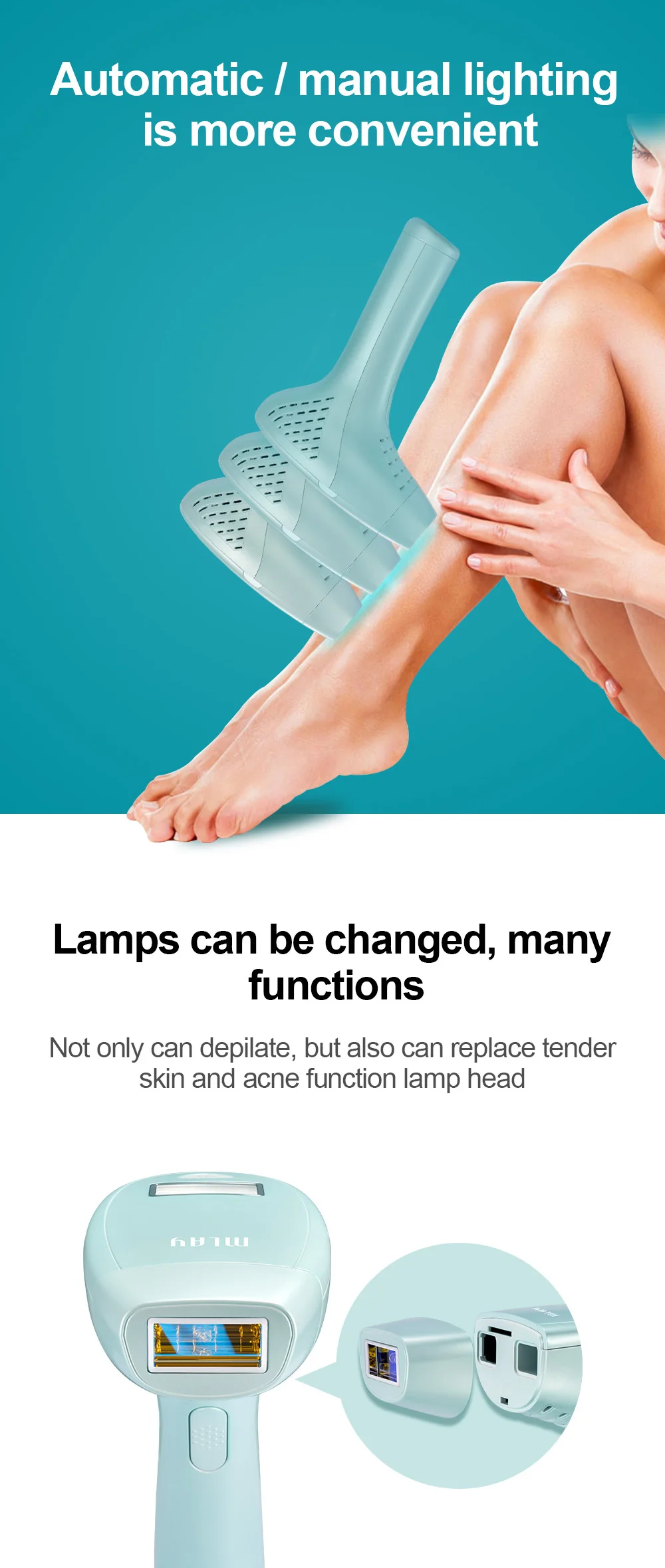 1. Премиум уход в комфорте вашего дома-Наслаждайтесь высококачественными услугами по удалению волос в любом месте. Наше устройство для удаления волос имеет компактный дизайн, который позволяет легко носить его с собой, когда вы идете. Вы никогда больше не потратите сотни долларов на салон красоты.2. Наиболее эффективная система удаления волос на теле-средство для удаления волос на теле MLAY использует интенсивный импульсный светильник (IPL) для обеспечения наиболее эффективного постоянного удаления волос. Он имеет 5 уровней энергии и будет давать отличные результаты только в 4-6 обработках.3.100% безопасно для вашей кожи-новейшая технология удаления волос IPL гарантирует вам полную безопасность по сравнению с другими методами постоянного удаления волос. Поэтому вы гарантируете полную безопасность, когда вы делаете это устройство для удаления волос на выбор. Надевайте очки при использовании устройства.4. Идеально подходит для мужчин и женщин-наше IPL постоянное устройство для удаления волос является идеальным выбором как для мужчин, так и для женщин. Идеально подходит для удаления волос с рук, подмышек, ног, спины, груди, линии бикини и лица. Примечание: Не для использования на красном, белом или сером волосах и коричневых или черных оттенках кожи.5. Надежный выбор для удаления тонких и густых волос-мы исследовали более 2000 человек по всему миру. Для удаления тонких волос: около 86.5% человек тонкие волосы 5 сеансов. Для удаления густых волос: около 83.2% человек требуют 8 занятий. После 3-6 месяцев использования, волосы заметно меньше и рост волос предотвращается, нам просто нужно поддерживать только каждые два или более Месяцев.6. Применимо: Рабочее напряжение 100 ~ 240 В, подходит для всех стран мира.7. Постоянный: IPL работает внутри пор, разрушает волосы, таким образом, обеспечивает постоянное удаление волос8. Длительный срок службы: кварцевая лампа для удаления волос с более длительным сроком службы и долговечным использованием9. Нулевые расходные материалы, без средних, без расходных материалов10. Безболезненный: пять регулируемых оптимальных уровней энергии в зависимости от толерантности кожи. Обеспечивает нежное лечение безболезненно и легко, не повреждая кожу. Светодиодный светильник ясно показывает уровень энергии.11. Быстрая и Большая область обработки: 3,9 квадратный см размер места не слишком большой или не слишком маленький для любой кривой тела, высокая эффективность и быстрая скорость, которая занимает всего несколько минут, чтобы удалить перекрещивающиеся волосы, которые трудно для традиционного метода удаления волос12. Безопасность: не влияет на нормальное выделение пота и кожного сала13. Удобно: портативный dsign и легко брать
