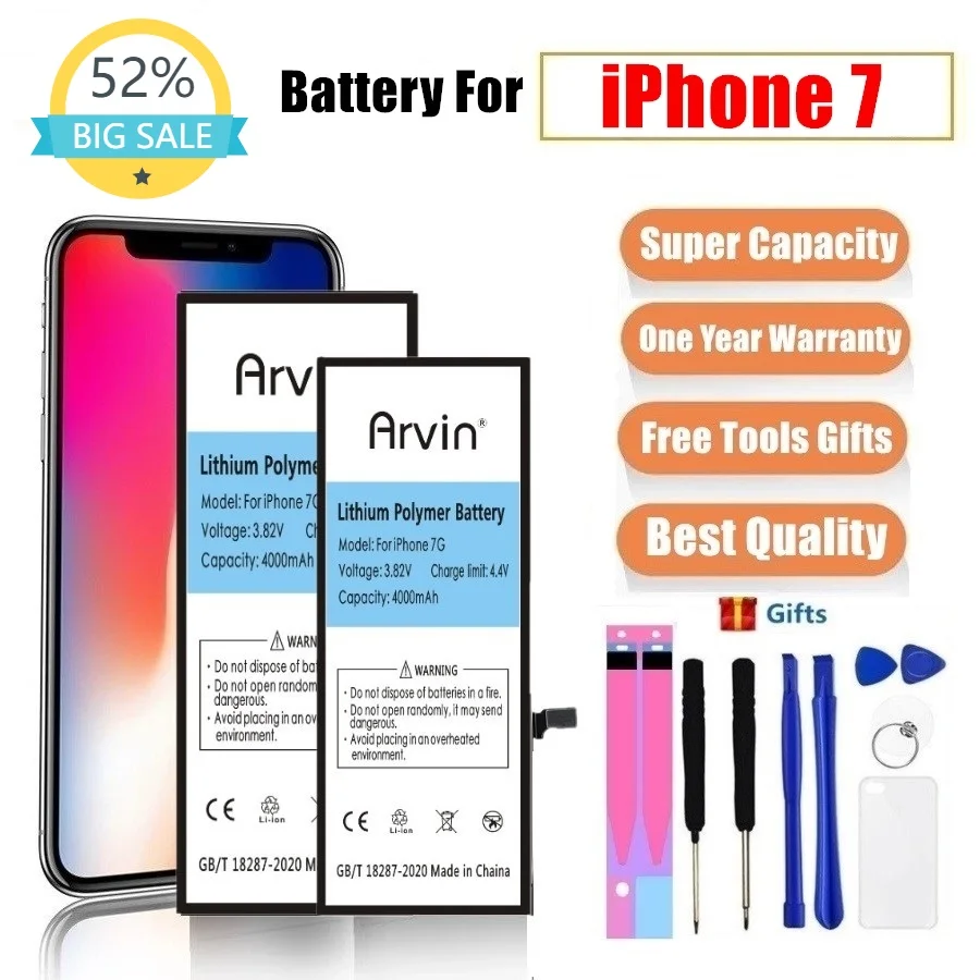 Оригинальный аккумулятор 4000 мАч для телефона iPhone 7G, сменная батарея для iPhone7 iPhone7g iphone 7G + Бесплатные инструменты + чехол для телефона