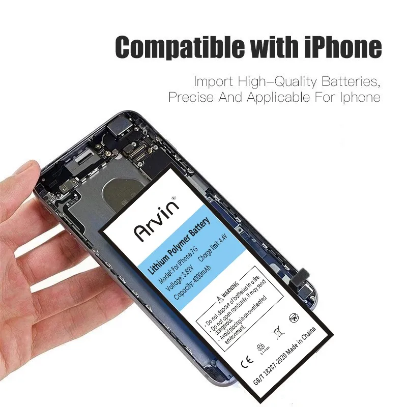 Описание товара: 1. Емкость: 4000 мАч 2. Тип: литий-полимерный аккумулятор. 3. Напряжение: 3,82 в 4. Размер: оригинальный размер 5. Совместимость с iPhone 7G 6. Тип батареи: высокая емкость/литий-ионный (литий-ионный) полимерный аккумулятор с премиум-ячейкой. Покупатели оплачивают заказы, мы отправим их быстро в течение 2-3 дней и проверим качество через профессиональное оборудование. Если у вас есть какие-либо вопросы, пожалуйста, свяжитесь с нами. Мы предлагаем 1 год гарантии, пожалуйста, будьте уверены в покупке и не беспокойтесь о проблемах с послепродажным обслуживанием.