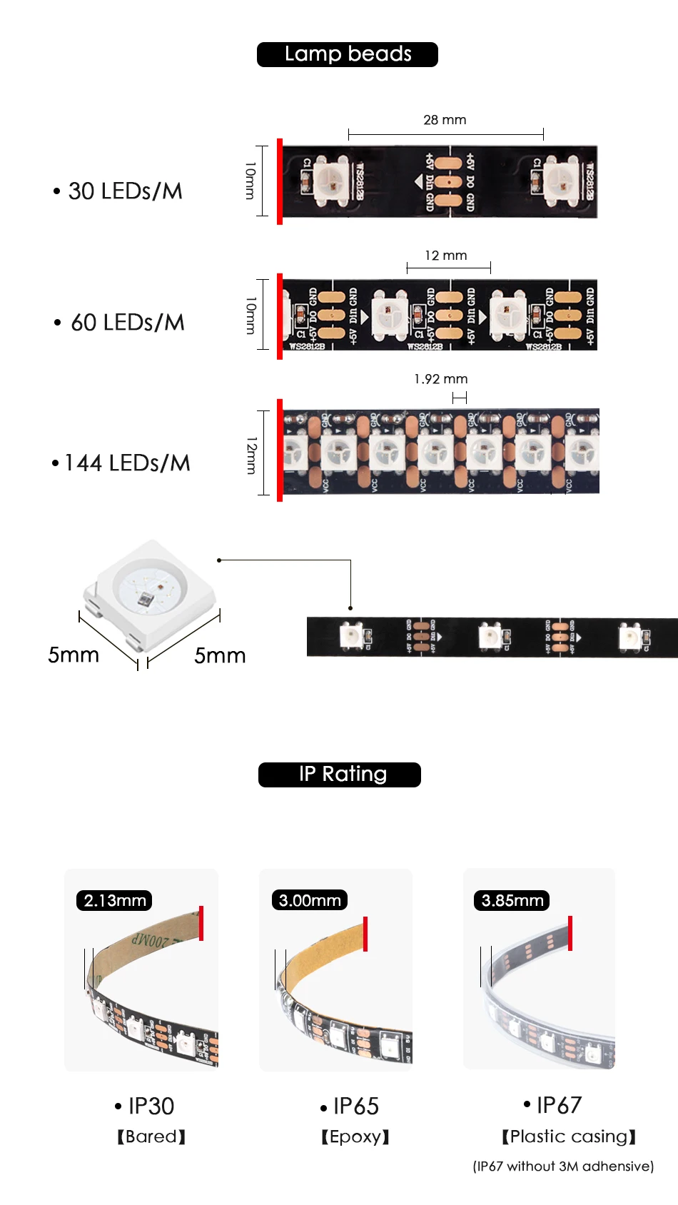 WS2812B WS2812 Светодиодная лента индивидуально Адресуемая умная светильник чернаябелая Водонепроницаемая печатная плата IP30IP65IP67 DC5V Светодиодная лента