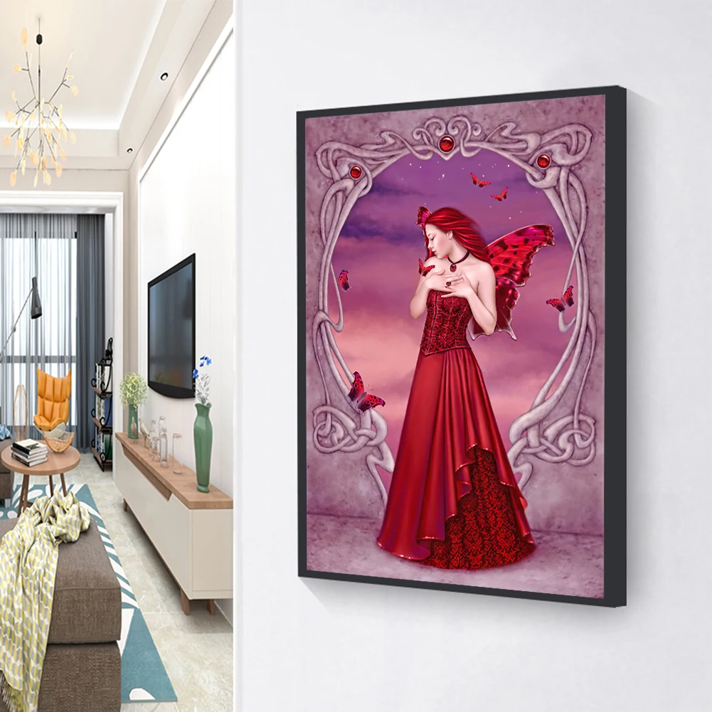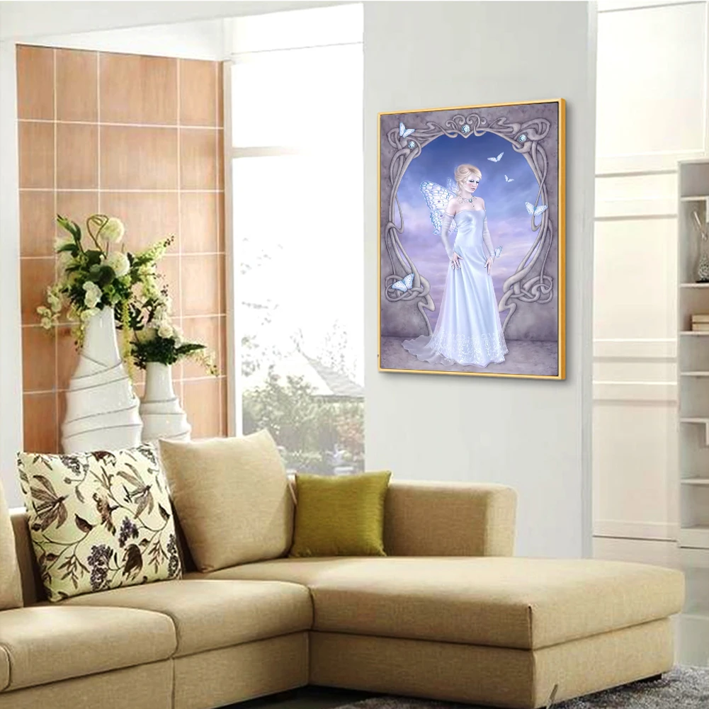 5D алмазная живопись, серия бабочек, ангелов, сделай сам, полностью круглая Алмазная картина, украшение для дома, подарок, подвесная картина 30x45 см