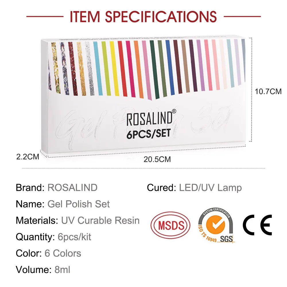 Розалинд 4/6/8/10 шт/набор Био-Гели Soak Off Однотонная одежда Гель-лак для ногтей, яркий для дизайн ногтей светодиодный/УФ-лампа