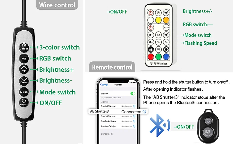 [Оперативно ответит на ваши selfie проблема] RGB кольцевой светильник в комплекте есть Поворотная «гусиная шея» держателем для телефона и Bluetooth selfie дистанционный пульт, сотовом телефоне держатель составляет до 3,5 дюймов в ширину, можно будет отрегулировать длину selfie угол, bluetooth селфи пульт дистанционного управления может сделать ваш телефон снимать удаленно, И оба совместимы с мобильными телефонами на рынке, такими как iPhone 11 pro max, 11, xs max, xs, 8 plus, se 2 и другие телефоны Android