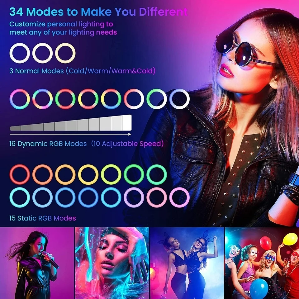 [Лучший светильник до сих пор] кольцевой светильник RGB в дополнение к белый светильник, теплый светильник и естественный светильник, традиционный кольцевой светильник s, он также имеет 16 смешивать цвета RGB режимы с 1 Быстро мигает режим, 10 уровней яркости затемнения, подходит для различных сценариев, независимо от того, это, видеозапись, фотография, макияж, вечерние, Или социальные сети, такие как TikTok facebook, youtube, мощный светильник ing, и меняет цвета функции, 10 дюймов RGB кольцевой светильник может удовлетворить все ваши потребности