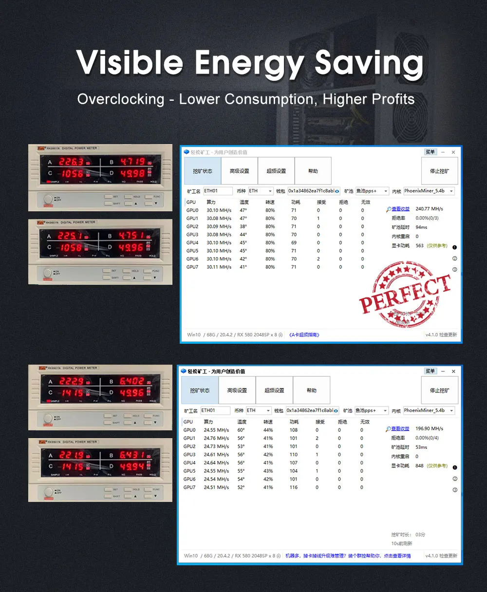 Материнская плата 8 GPU для майнинга биткоинов, криптовалюмов, поддержка майнинга 106613331600 МГц