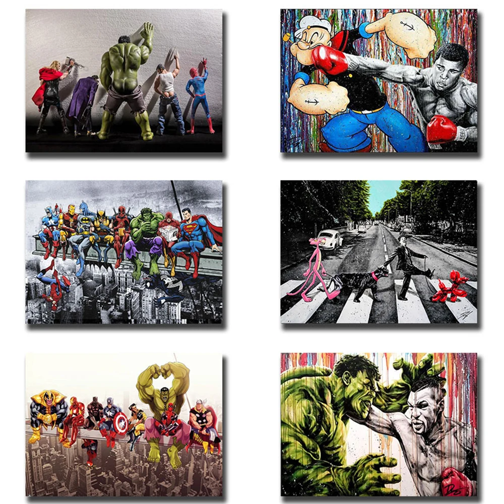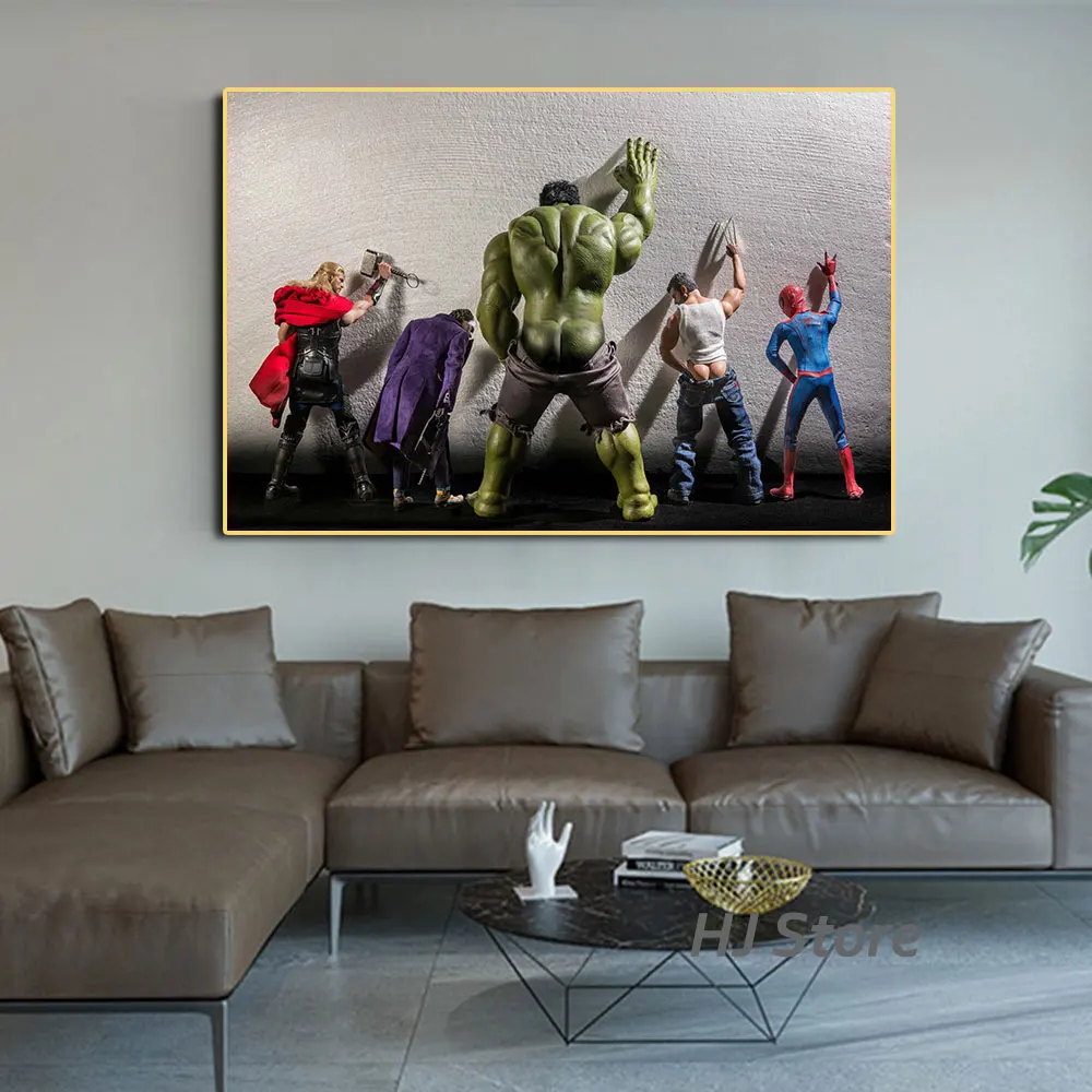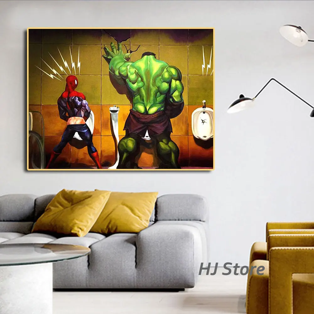 Постеры с принтом супергероев Марвел, Мстители, es, в туалетах, Забавный герой для детской комнаты, украшение на стену, Картина на холсте, Куадрос