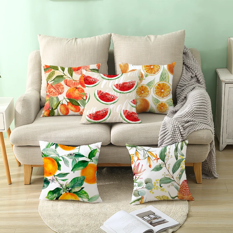 Наволочка для подушки с изображением Летних Фруктов, 45x45, декоративная наволочка из полиэстера с изображением лимона, апельсина, клубники, арбуза, диванные подушки, домашний декор