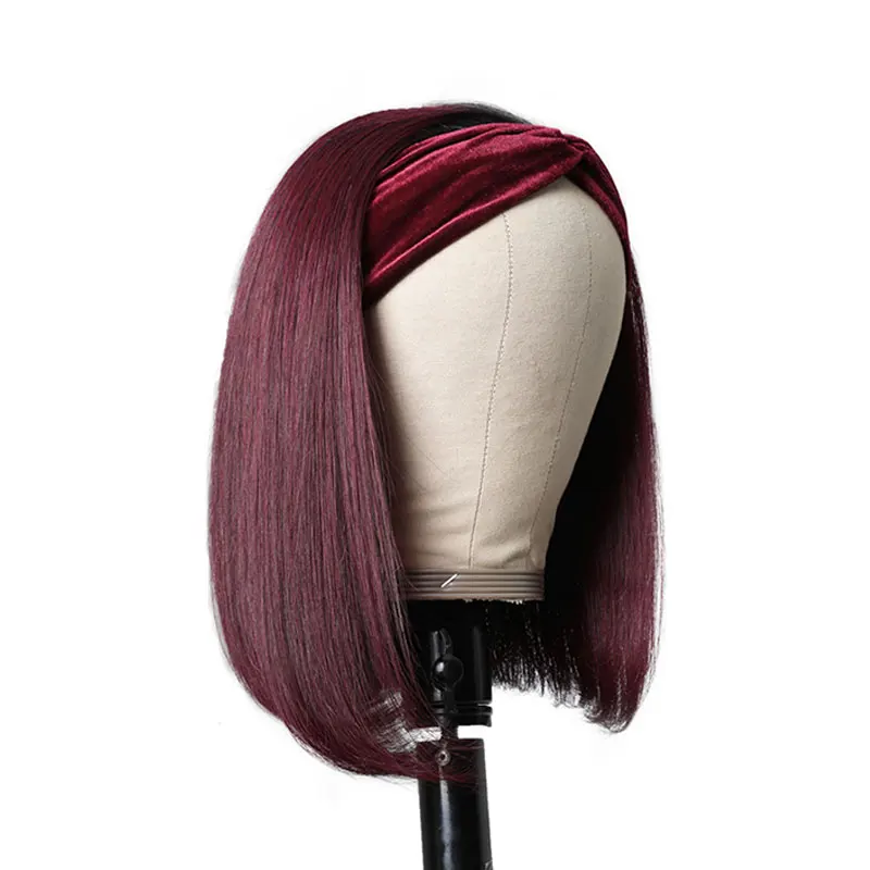 Парики с повязкой на голову 99J, синтетические Короткие парики боб, парики полностью машинного изготовления, термостойкие прямые волосы, парики для чернокожих женщин
