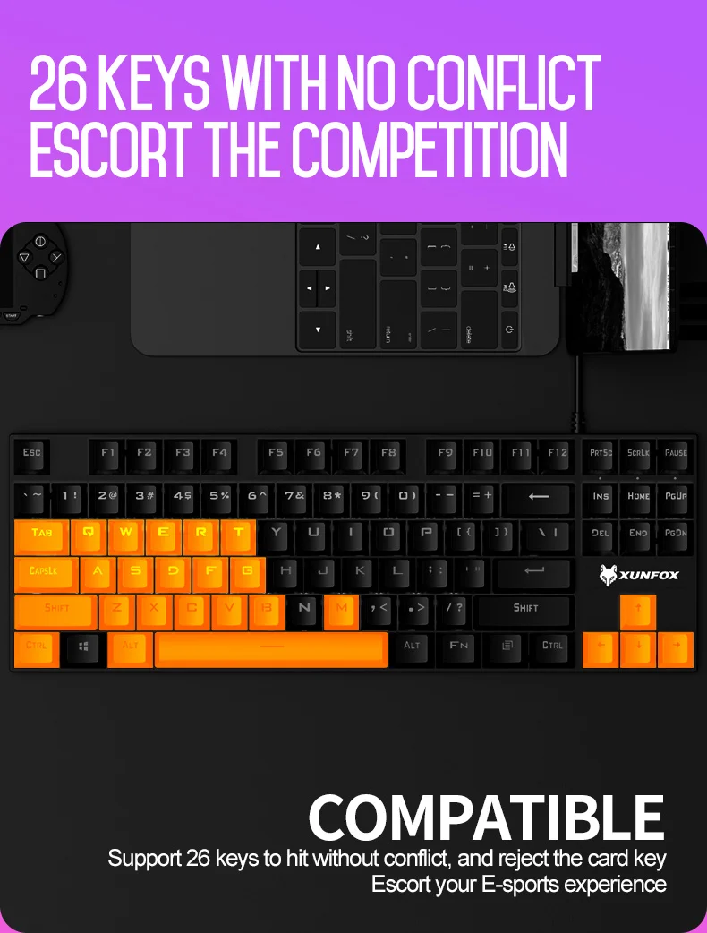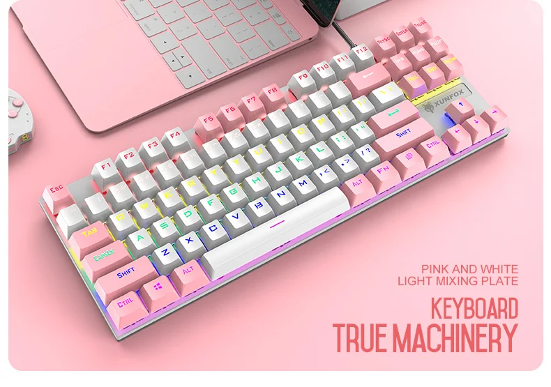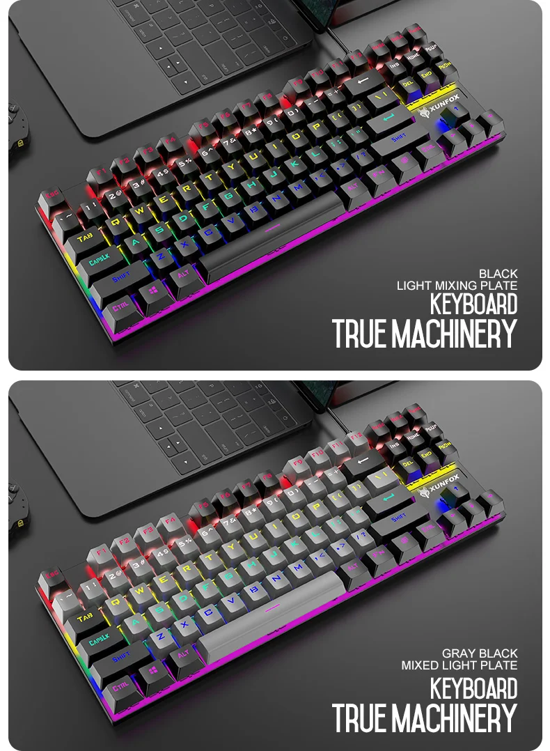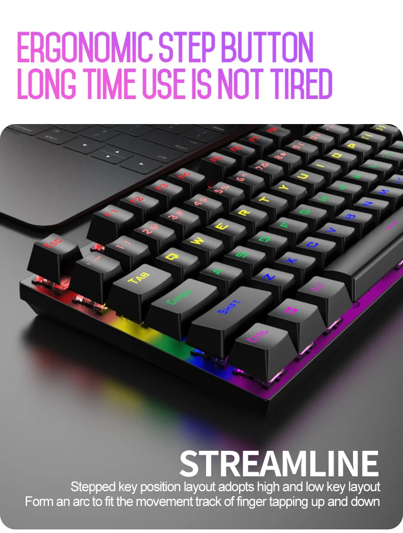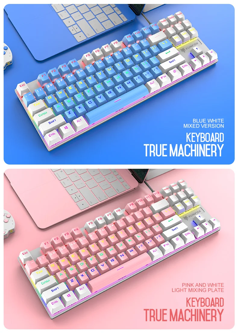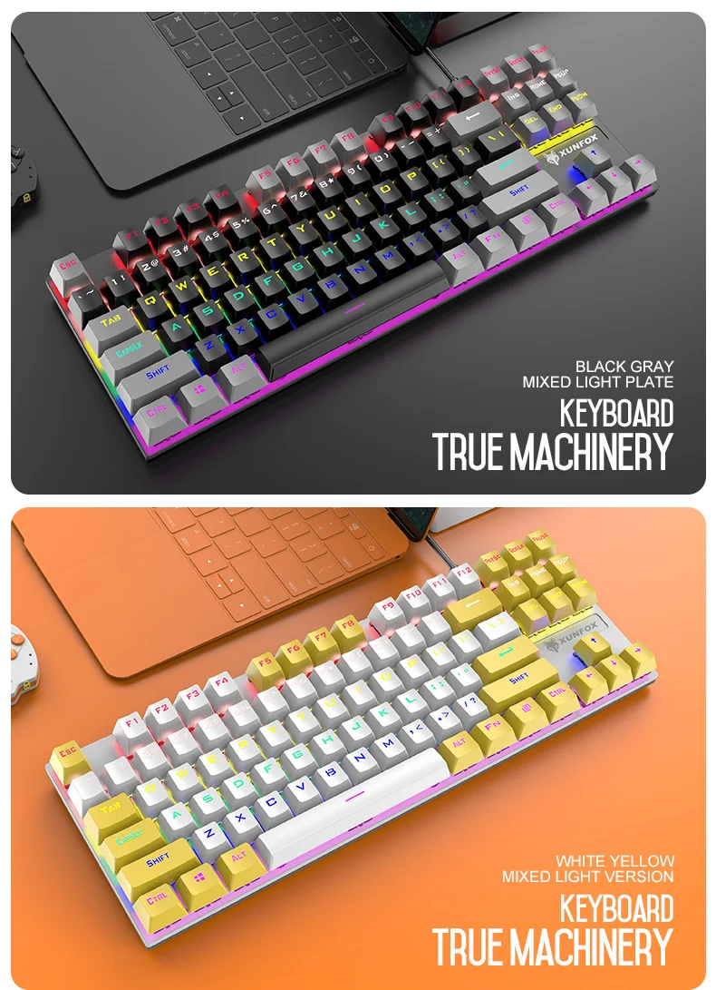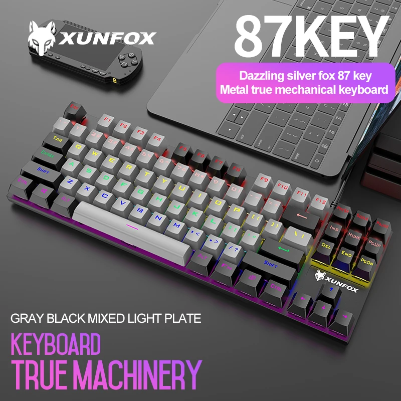 Механическая клавиатура с металлической крышкой, 87 клавиш с валом, разноцветсветильник, яркий светодиодный эффект, водонепроницаемая электронная игровая клавиатура