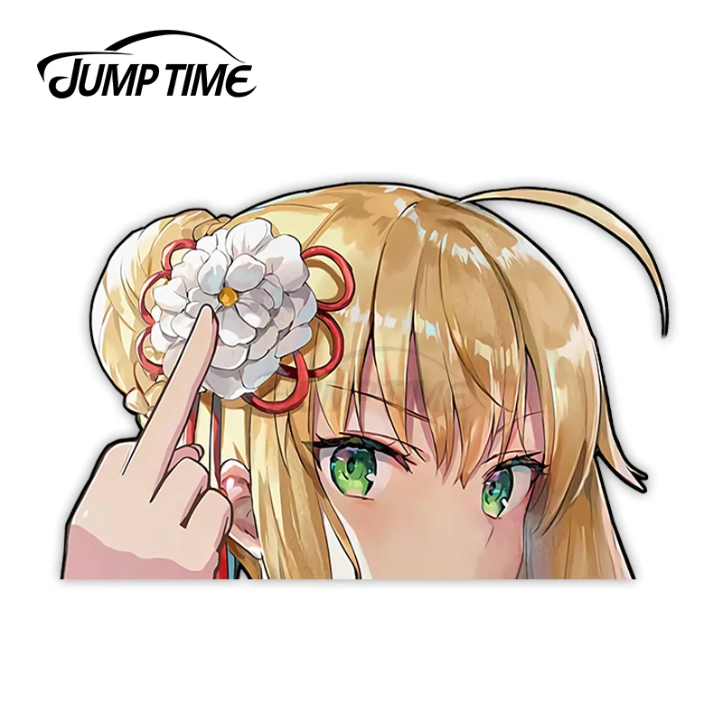 Автомобильные наклейки JumpTime 13x11,1 см с принтом саблей Fate Stay Night Peeker Big Head RV Windows, искусственное аниме мультяшное украшение