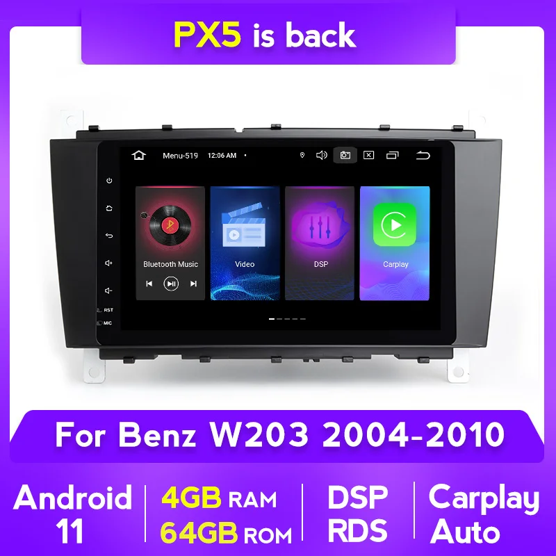 Автомобильный мультимедийный плеер, 8 дюймов, Android 11, с радио, DVD, GPS, для Benz C Class W203 W219 C180 C200 C230 C320 C350 CLK W20 2004-2007