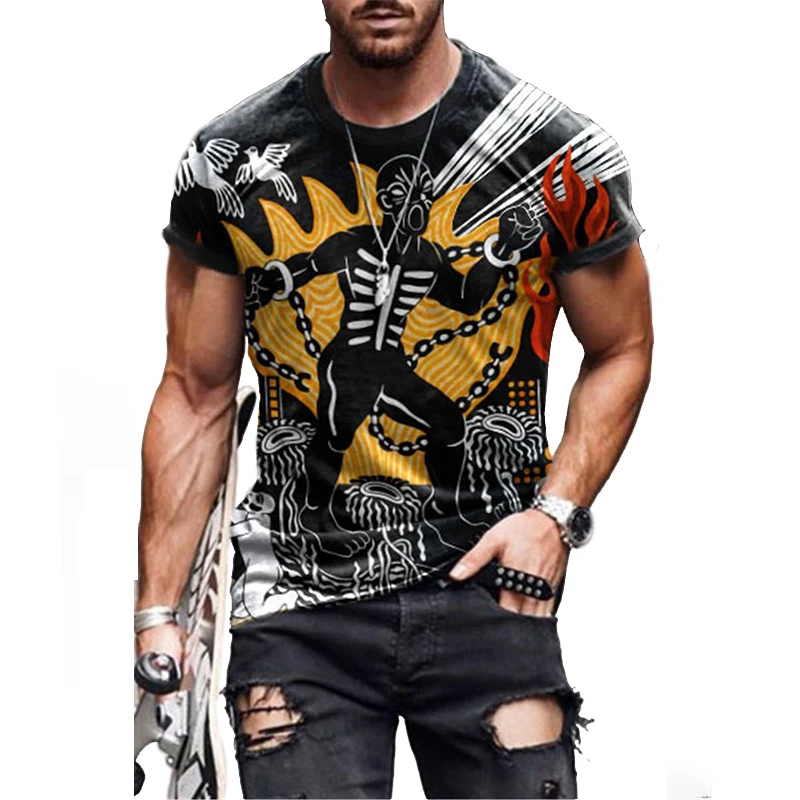 Мужские популярные трендовые 3d футболки Череп покер пики Харадзюку этнические печатные винтажные с коротким рукавом Новая Летняя мода модная футболка