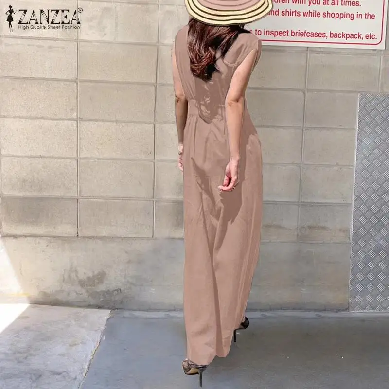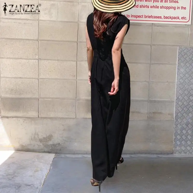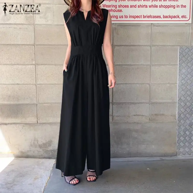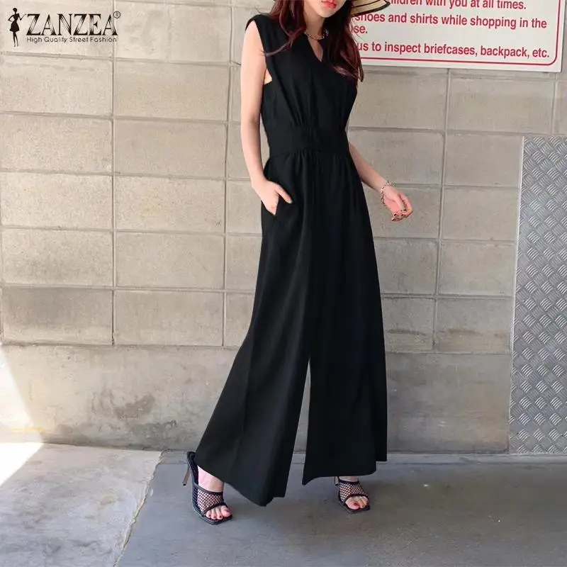 Комбинезон ZANZEA женский с широкими штанинами, элегантный однотонный модный Ромпер без рукавов, с V-образным вырезом, лето