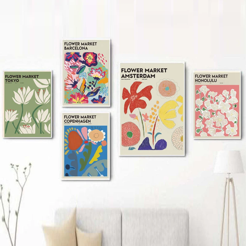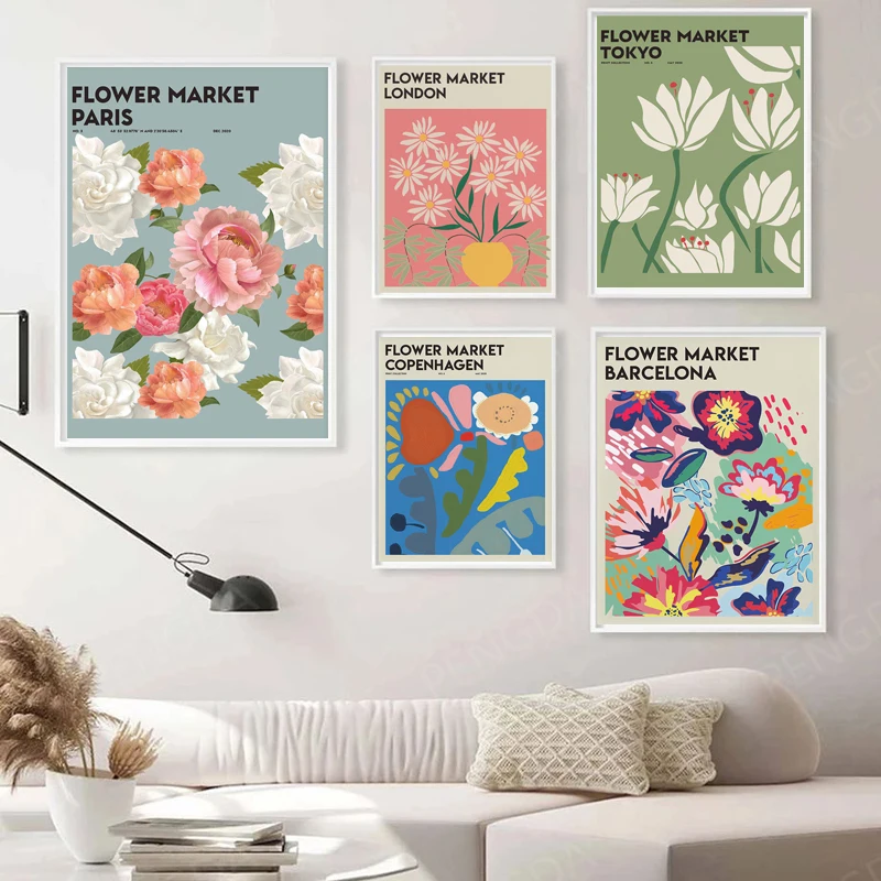 Цветочный рынок, ретро настенная Картина на холсте, Лондон, Токио, ...