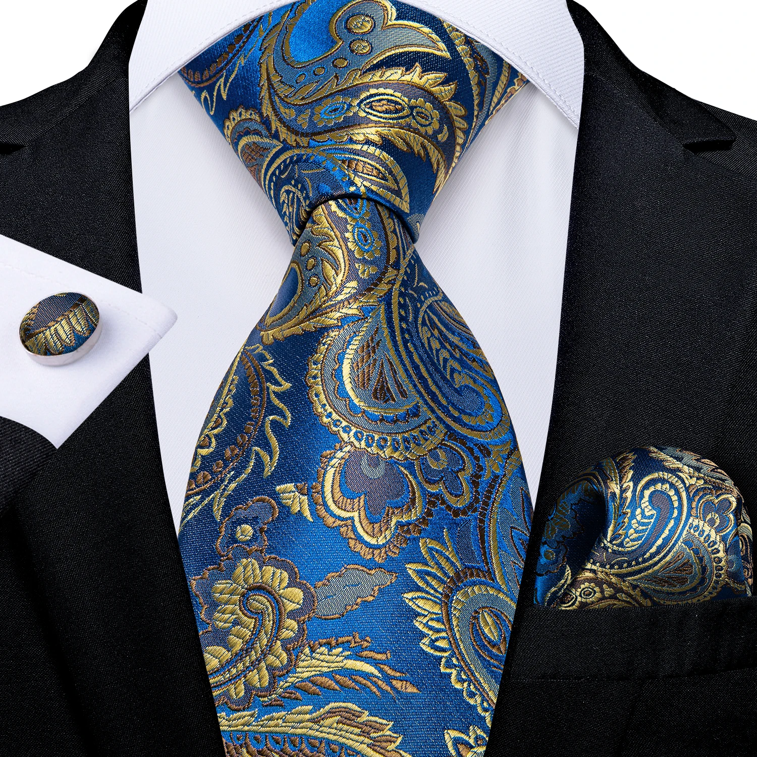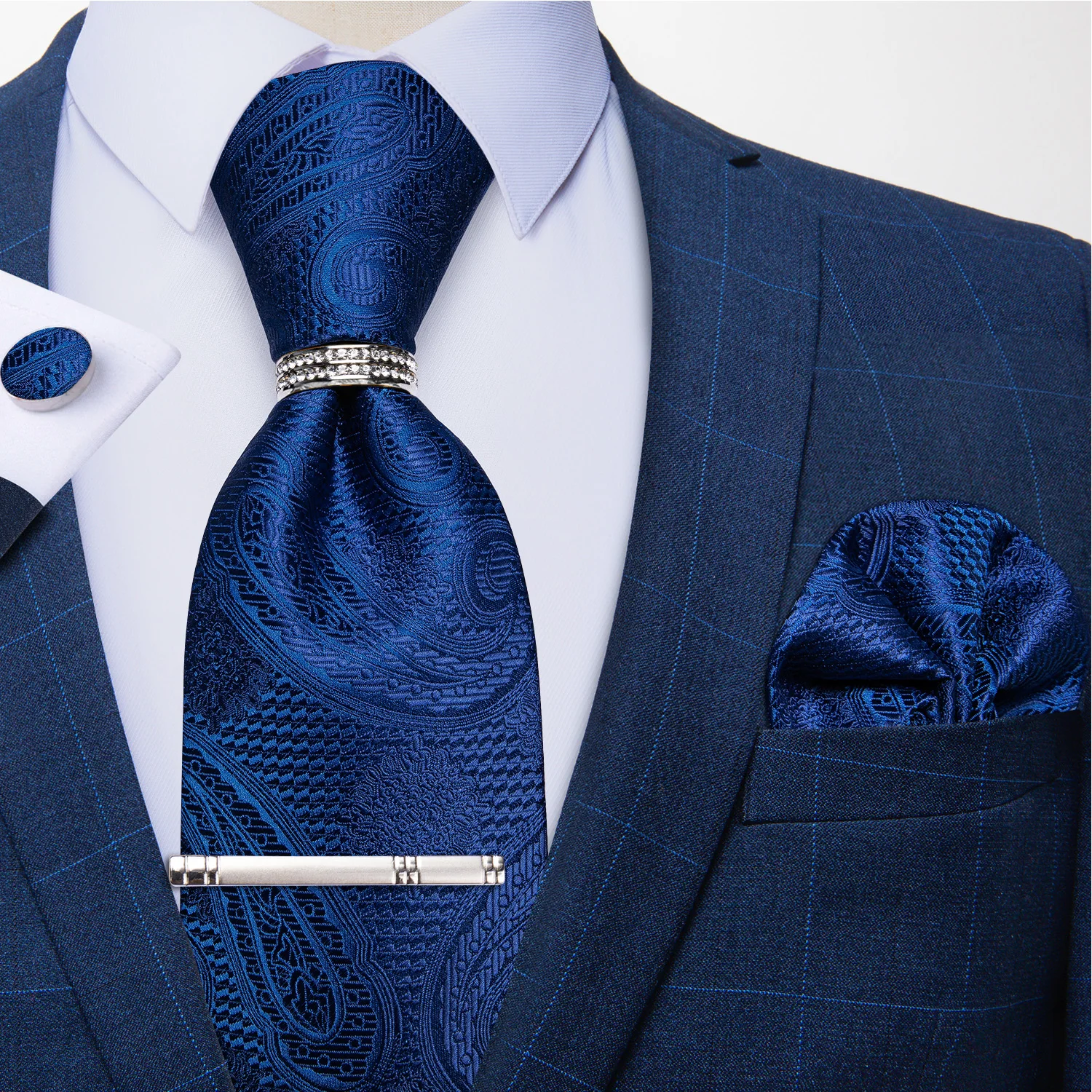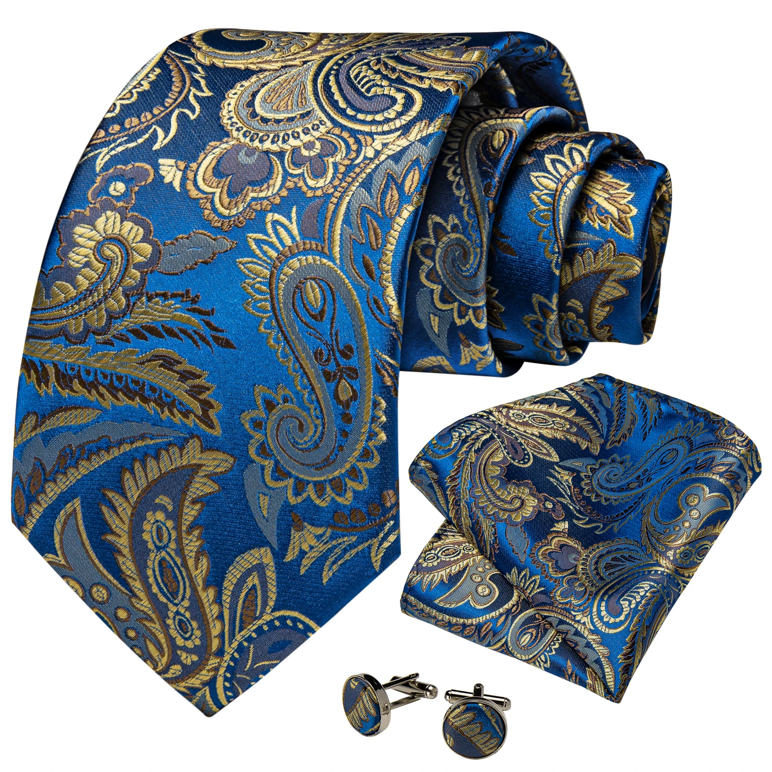 Желтый Пейсли синий галстук для мужчин серебряный зажим для галстука кольцо для галстука 100% шелк деловой Свадебный Мужской галстук запонки подарок DiBanGu
