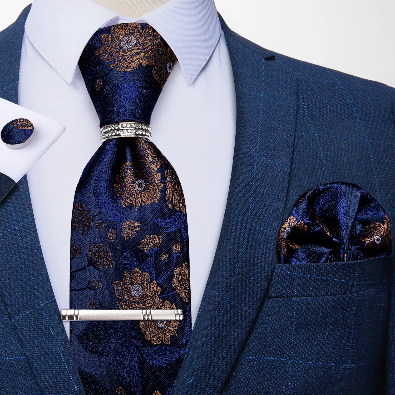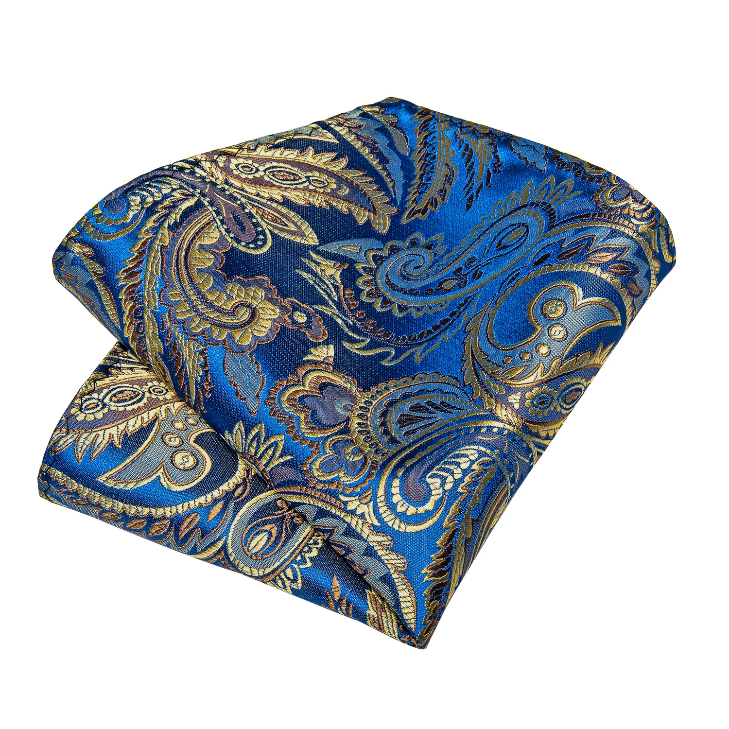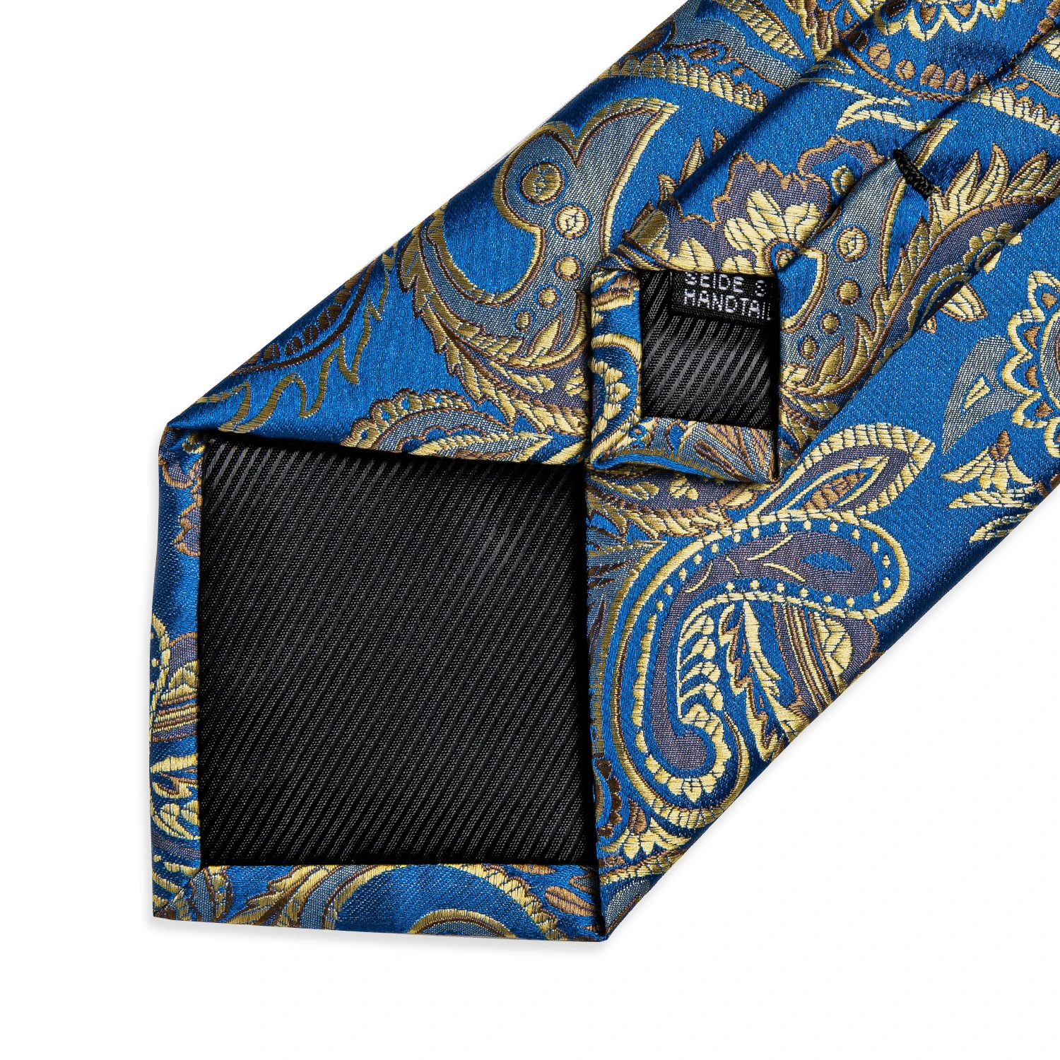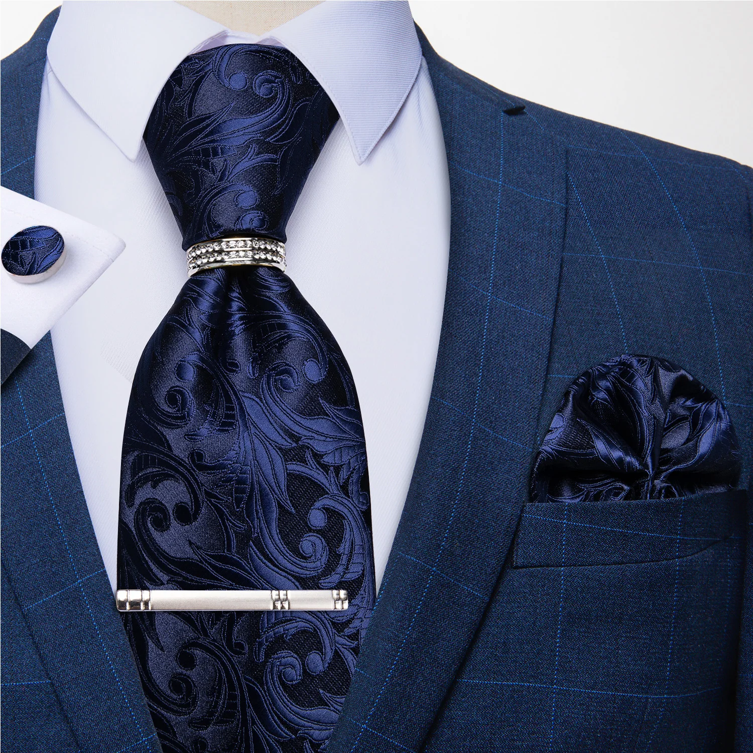Желтый Пейсли синий галстук для мужчин серебряный зажим для галстука кольцо для галстука 100% шелк деловой Свадебный Мужской галстук запонки подарок DiBanGu