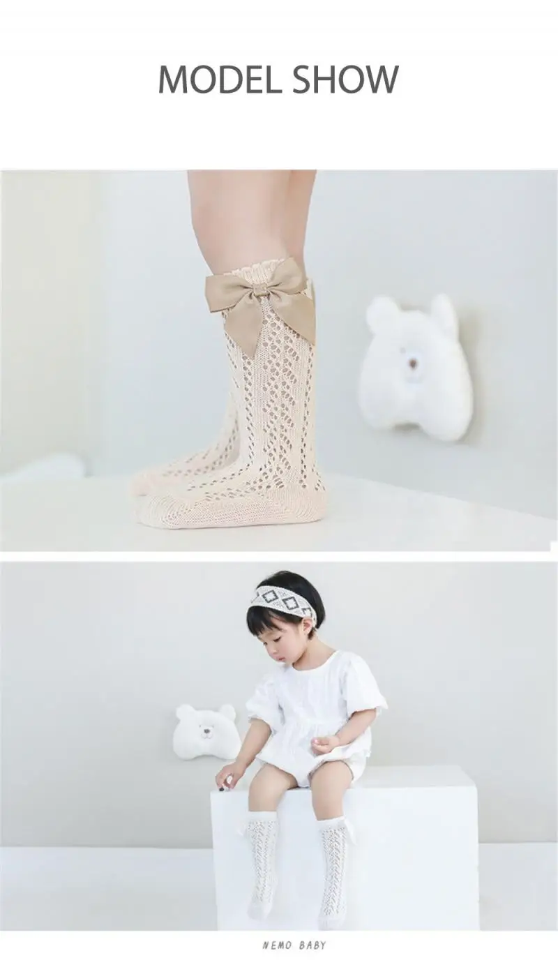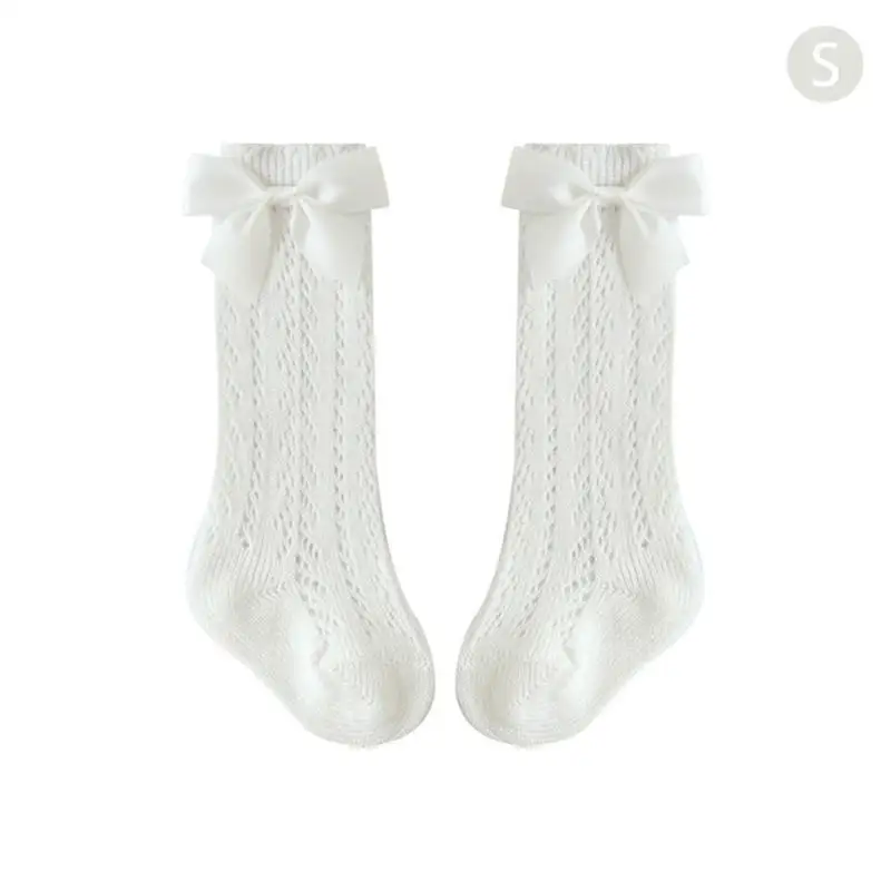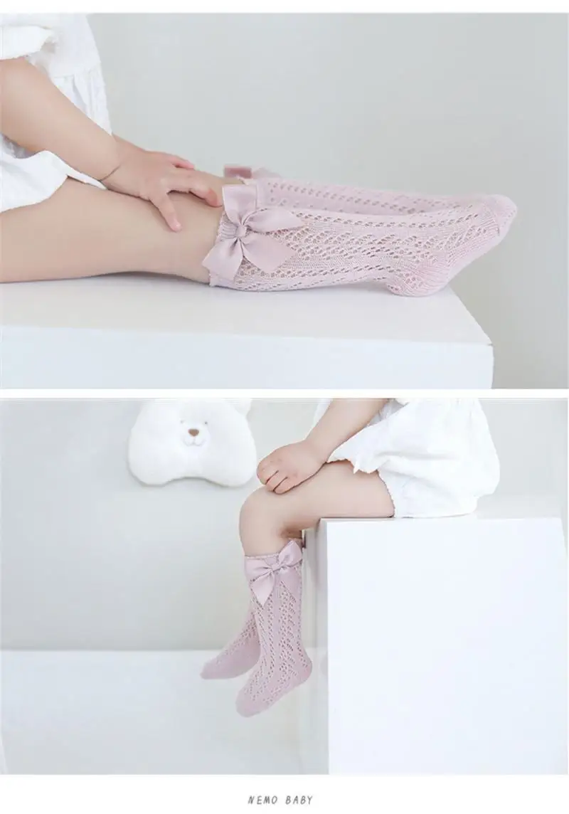 Летние испанские детские носки, тонкие сетчатые носки, детские носки принцессы с большим бантом для девочек, детские носки до колена, мягкая хлопковая сетка