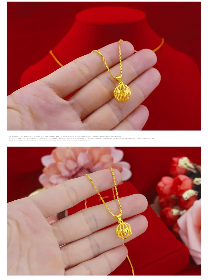 Простое модное ожерелье из 18-каратного золота, женские свадебные ювелирные изделия, шармы подвеска с полым шариком с цепочкой для подруги, подарок на день рождения