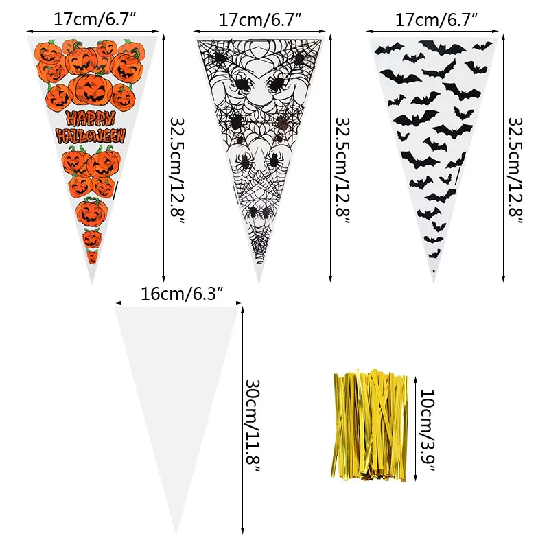 100 шт.лот Хэллоуин конус сумки тыквы пластиковая прозрачная упаков...