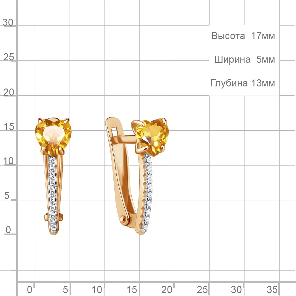 Серьги тренд 2022 NOVOZOLOTO подлинное серебро 925 пробы Россия, цитрин, покрытие золото