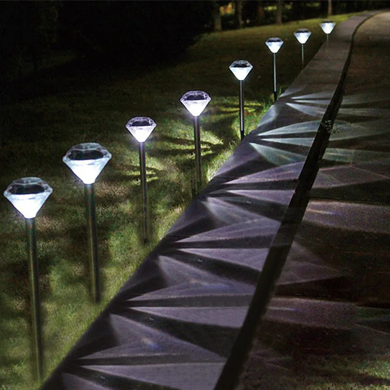Солнечный СВЕТОДИОДНЫЙ светильник с прямым полюсом, алмазная газонная лампа для украшения сада, дорожка, пейзаж, уличный светодиодный светильник на солнечной батарее