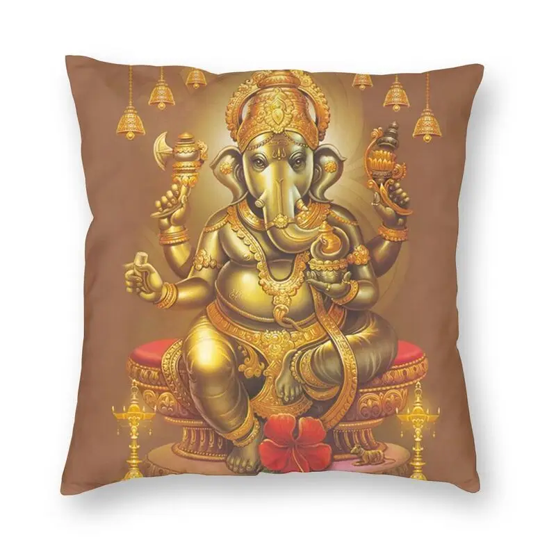 Наволочка Gold Lord Ganesha 45x45, домашняя декоративная подушка с 3D принтом, индуийский Бог, статуя Будды, слон, декоративная подушка для автомобиля, двухсторонняя