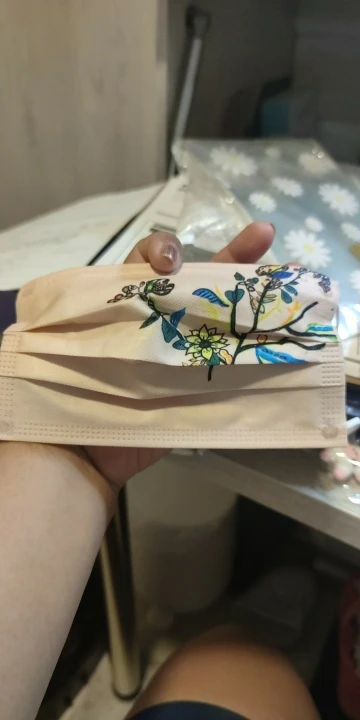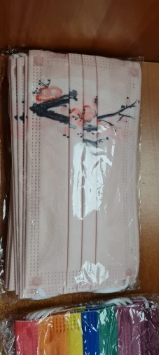 Маски не соответствуют фото, по цвету они розовые с оранжевым подтоном, рисунок на полмаски. Я хотела как можно нейтральнее . На фото цвет кожи и тонкая веточка сбоку. В реале как рана на щеке, я разочарована. Хорошо хоть резинки мягкие и слабые.
