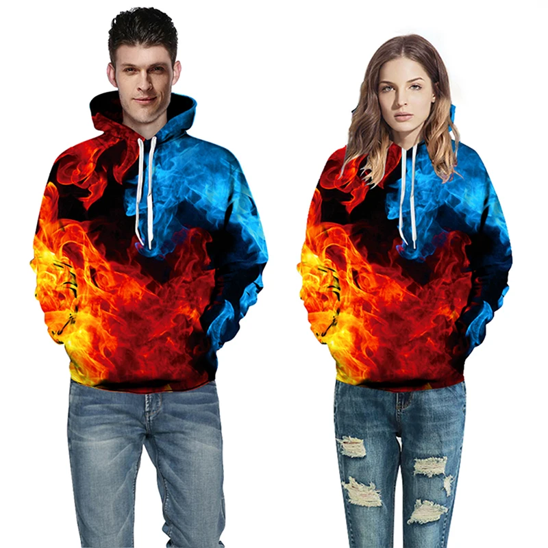 Толстовка с 3D-принтом пламени для мужчин и женщин, Модный свитшот,...